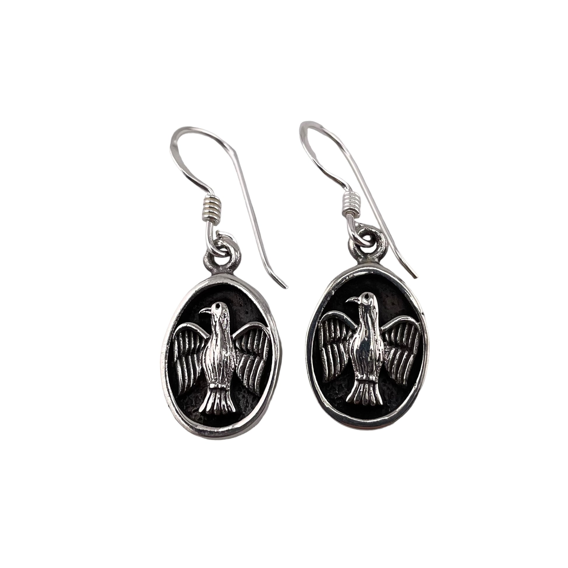 Eagle Dangle Earrings Sterling Silver. Measurements of these earrings are 1- 1/4" L and 1/2"W.