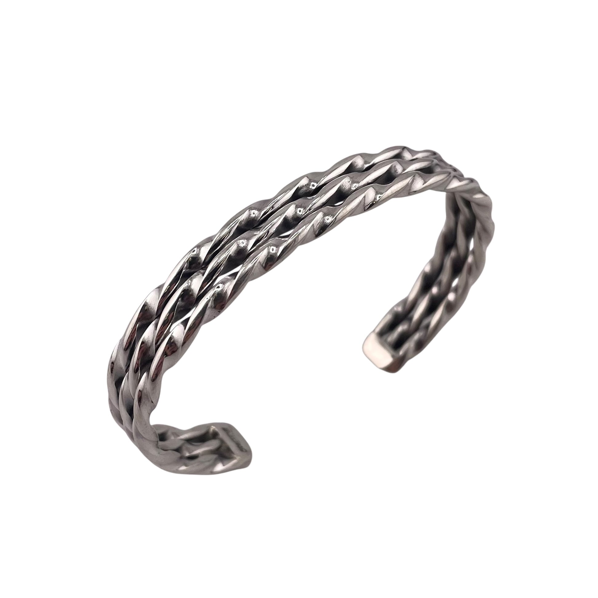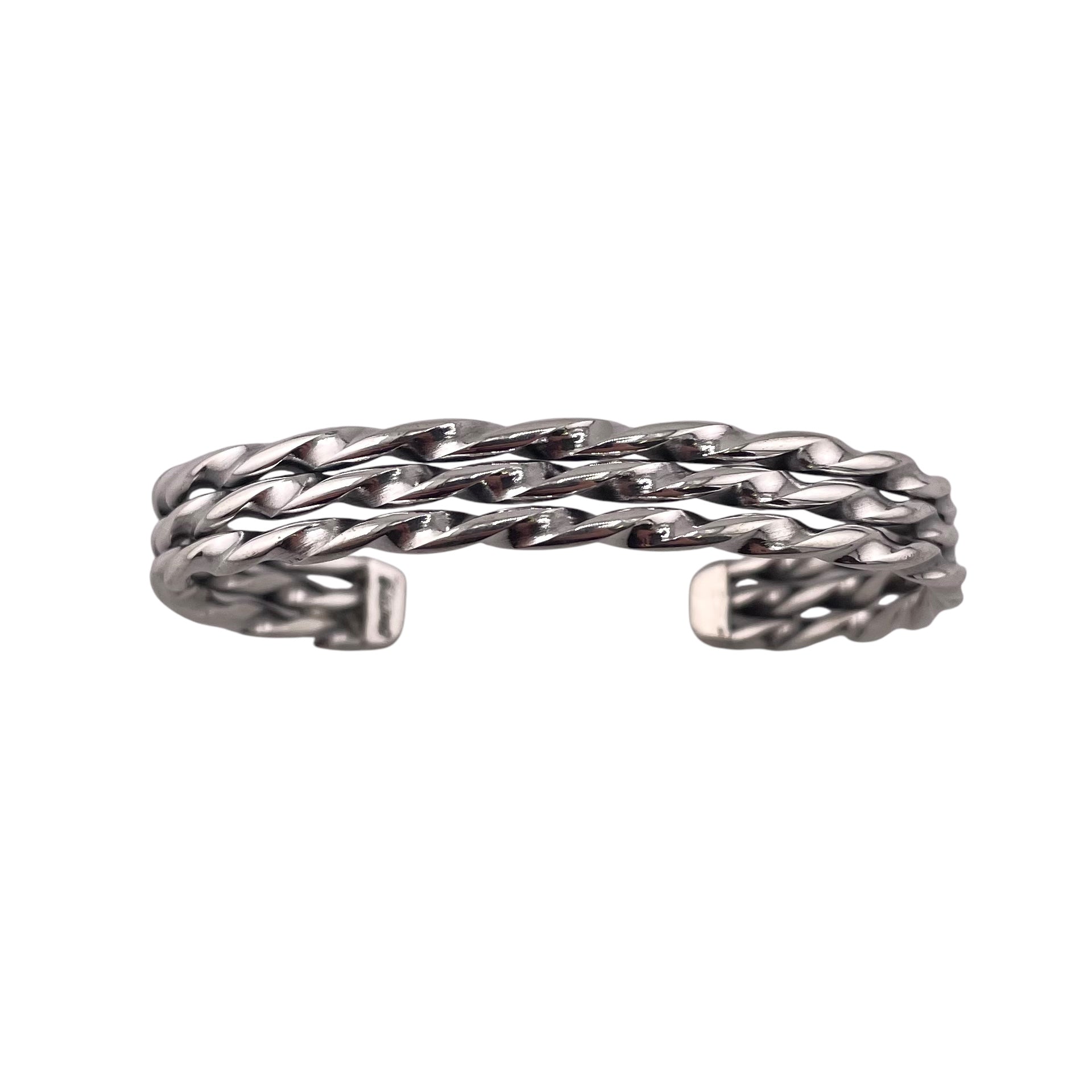 Elaine Tahe Sterling Silver Navajo Triple Rope Twist 9mm Bracelet