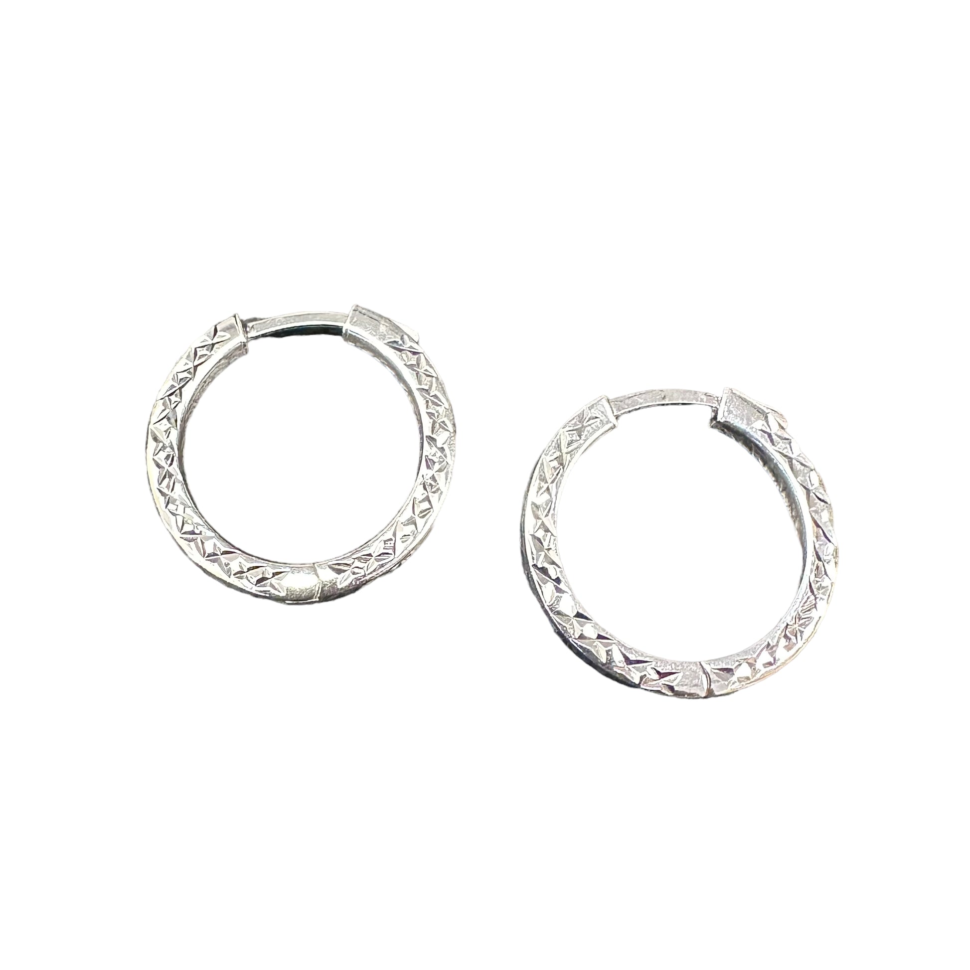 Fancy Stamped Hinged Hoop Earrings Sterling Silver
