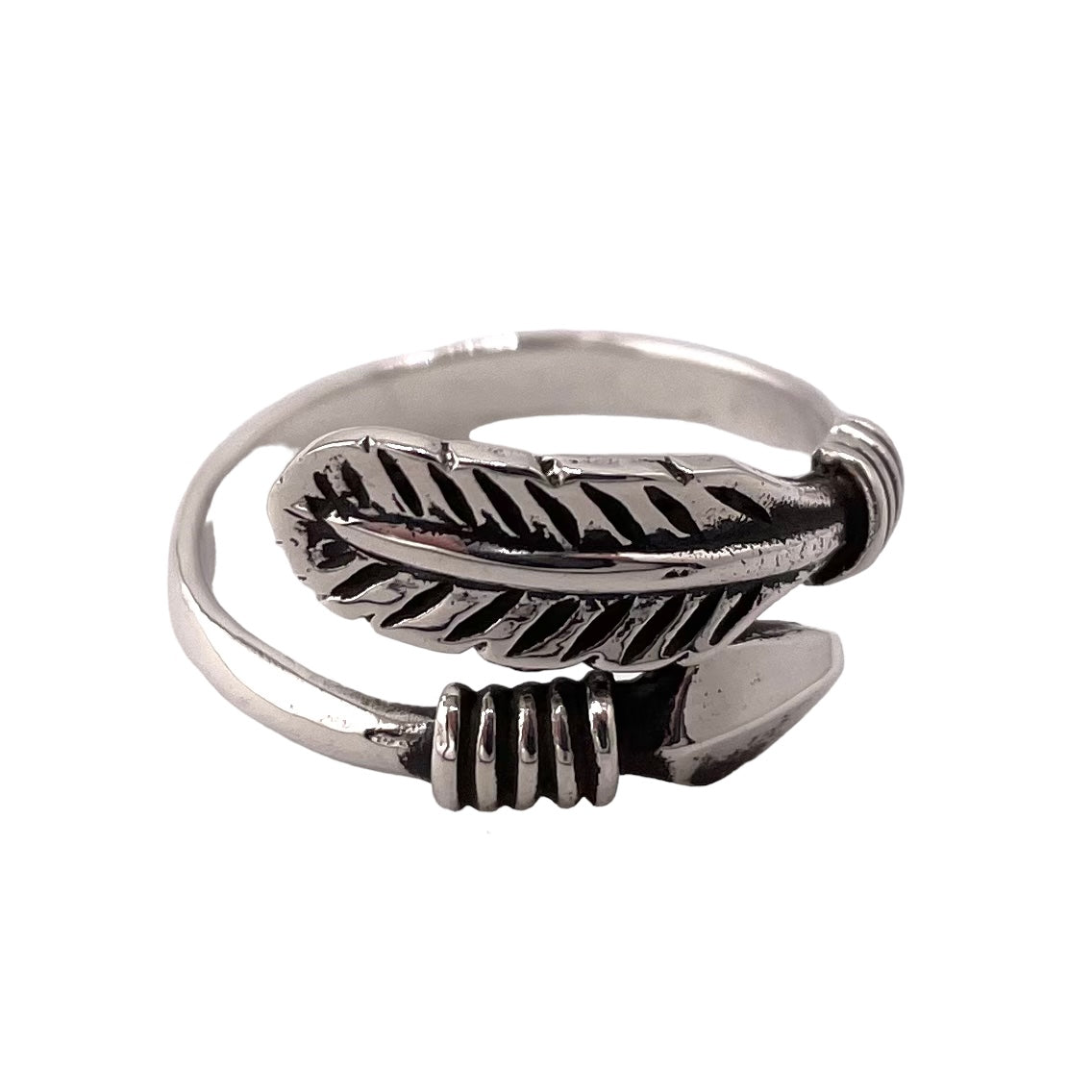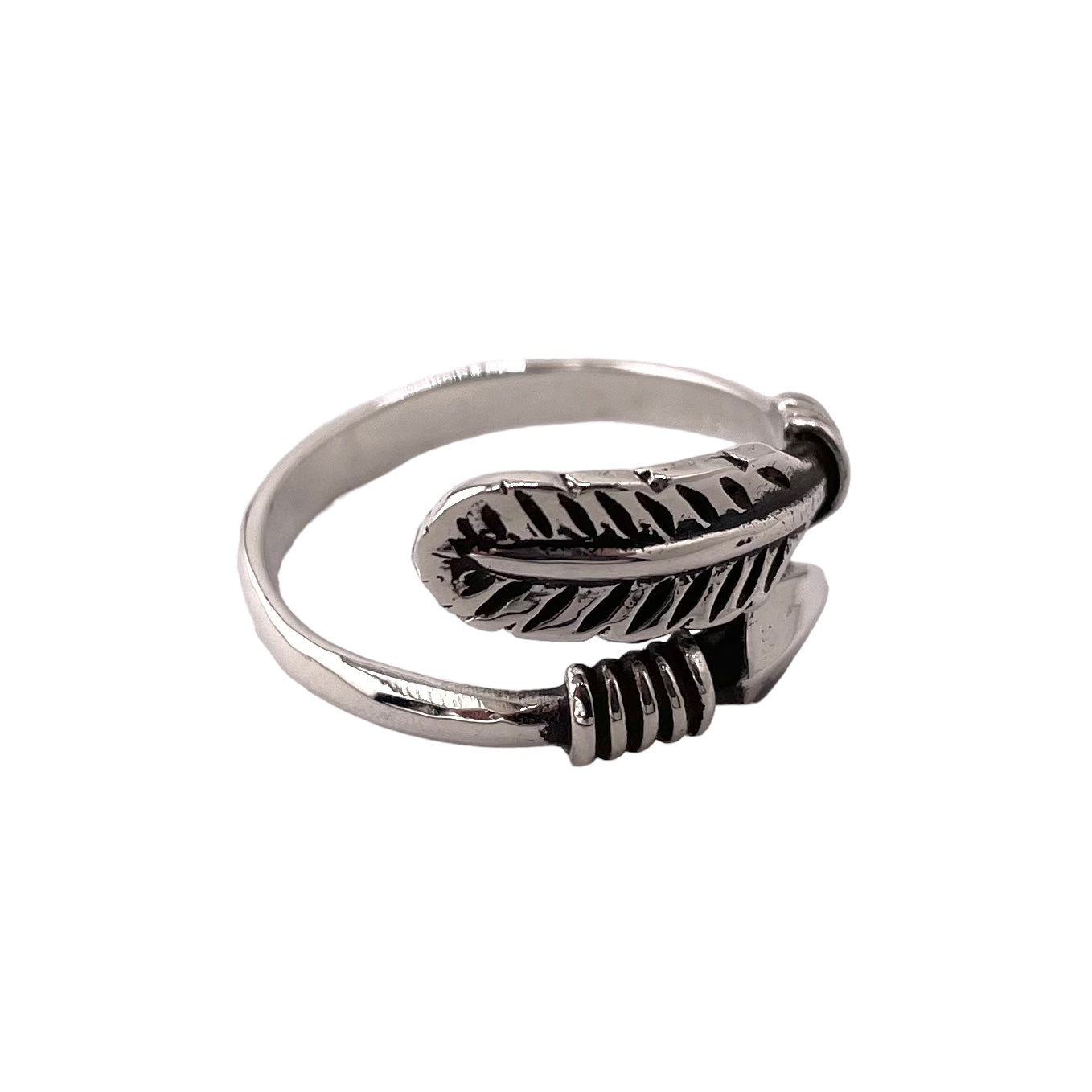 Feather Arrow Wrap Ring Sterling Silver. This ring measures 11mm wide. It is available in sizes 6-11.