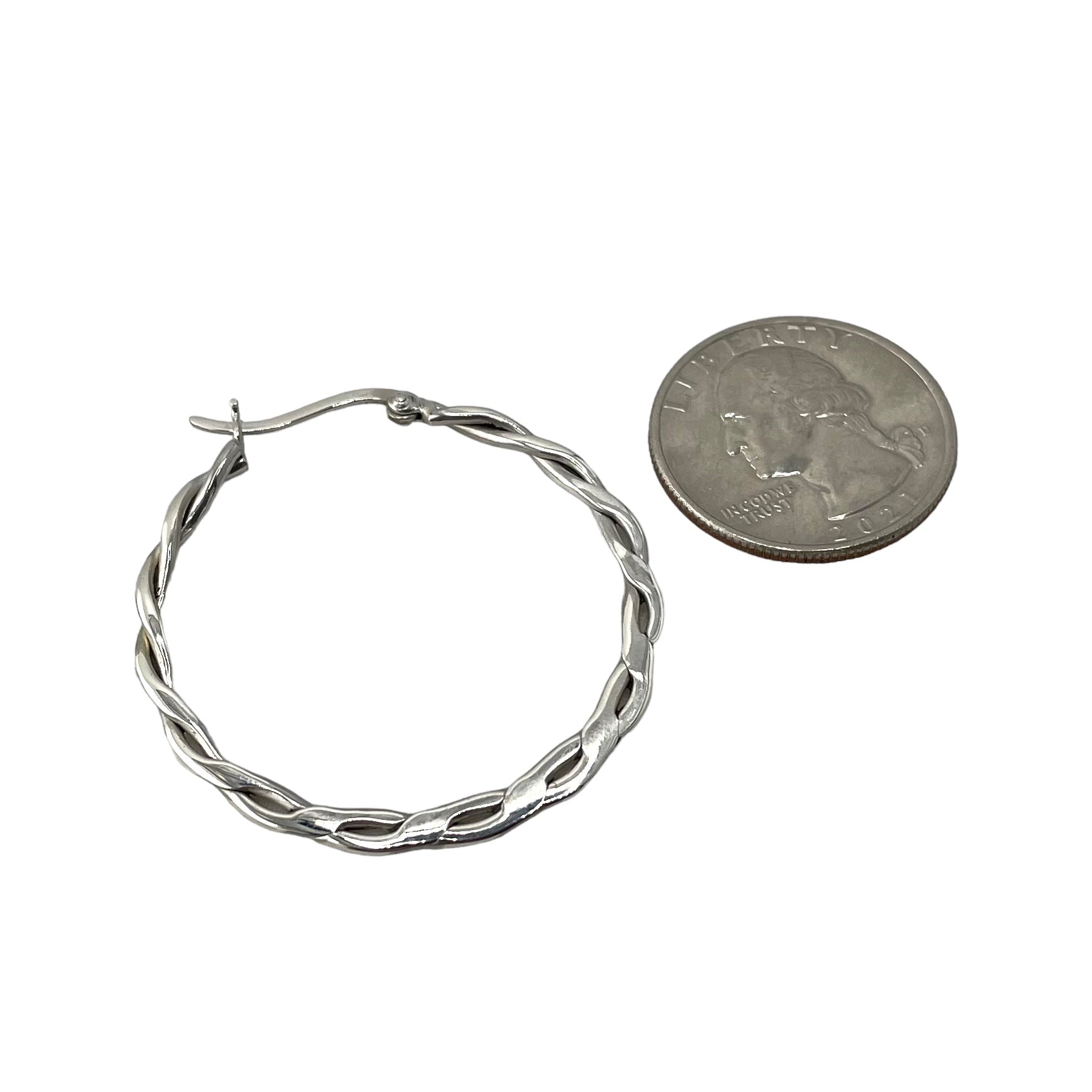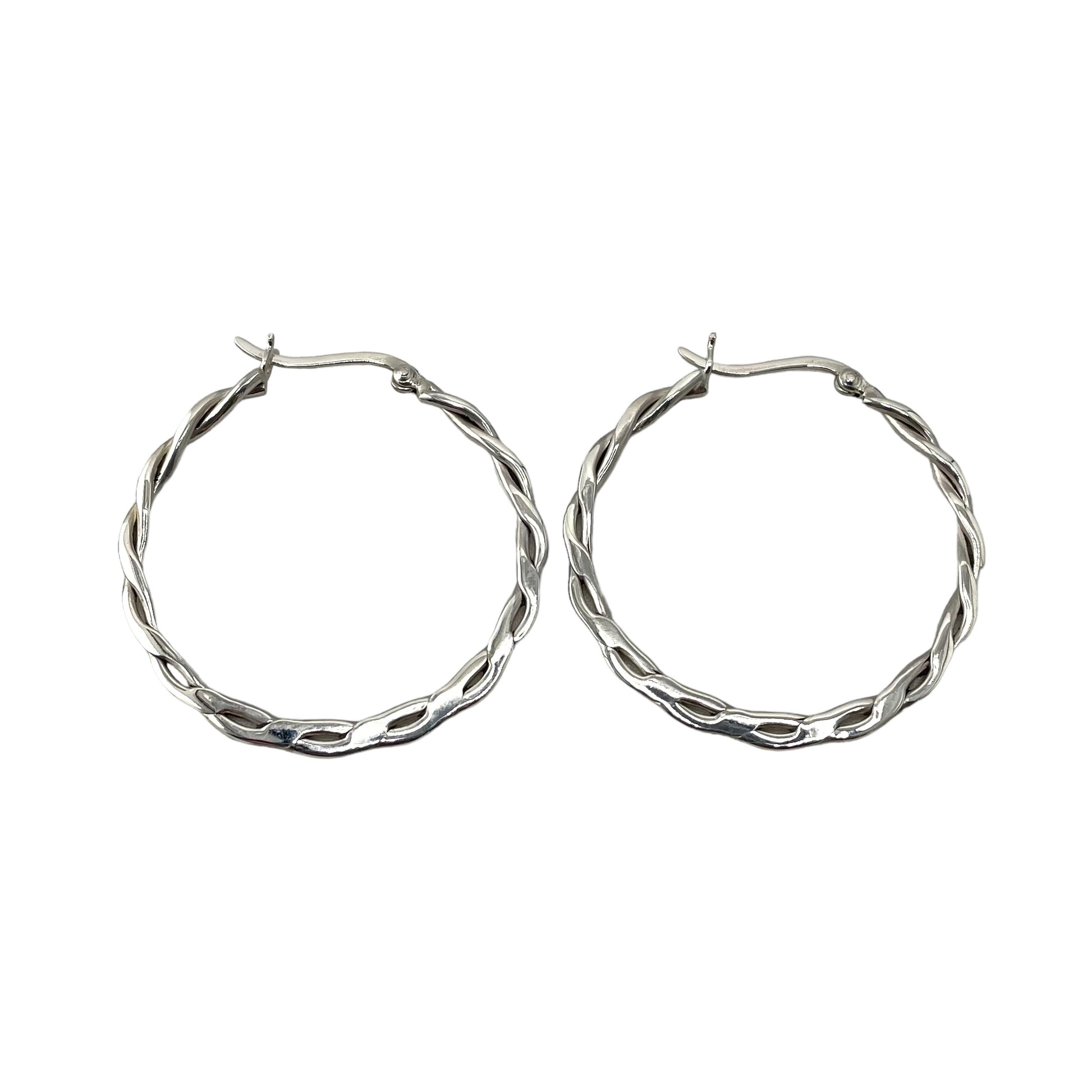 Flat Braid 40mm Hinged Hoop Earrings Sterling Silver. Measurements of these earrings are 1- 9/16" L and 1/8"W.Â