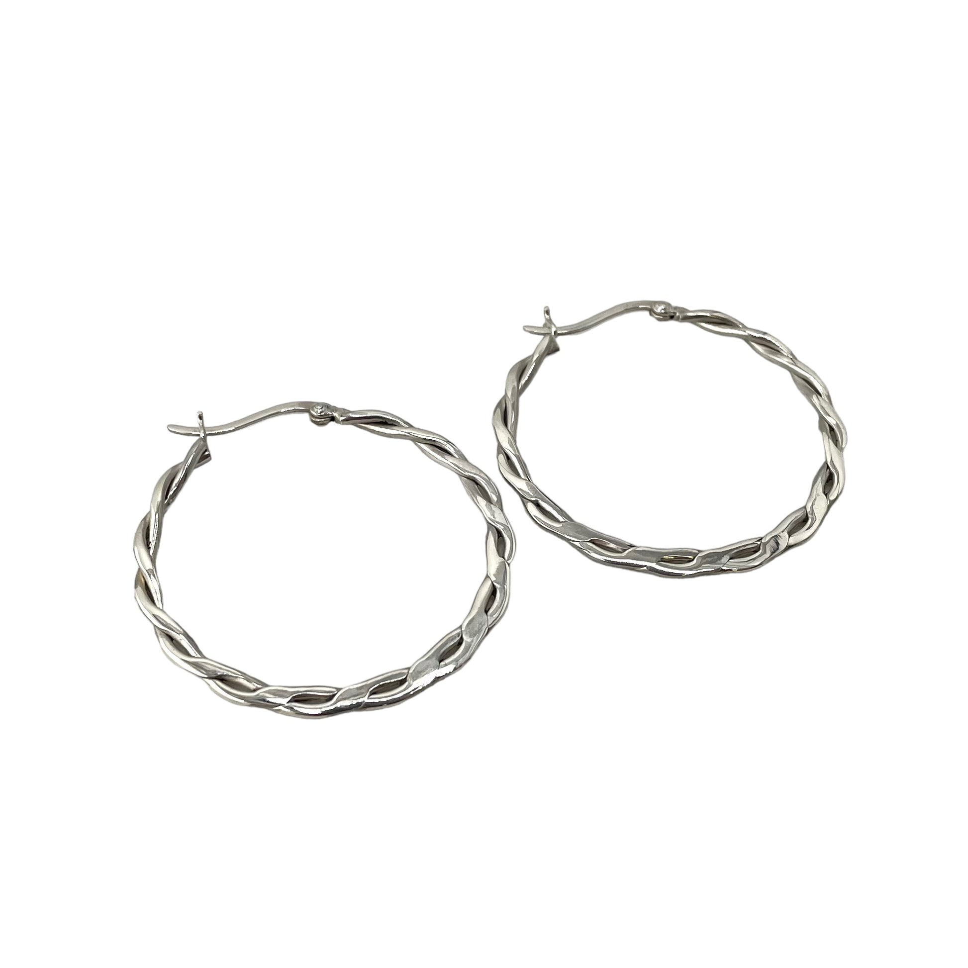 Flat Braid 40mm Hinged Hoop Earrings Sterling Silver