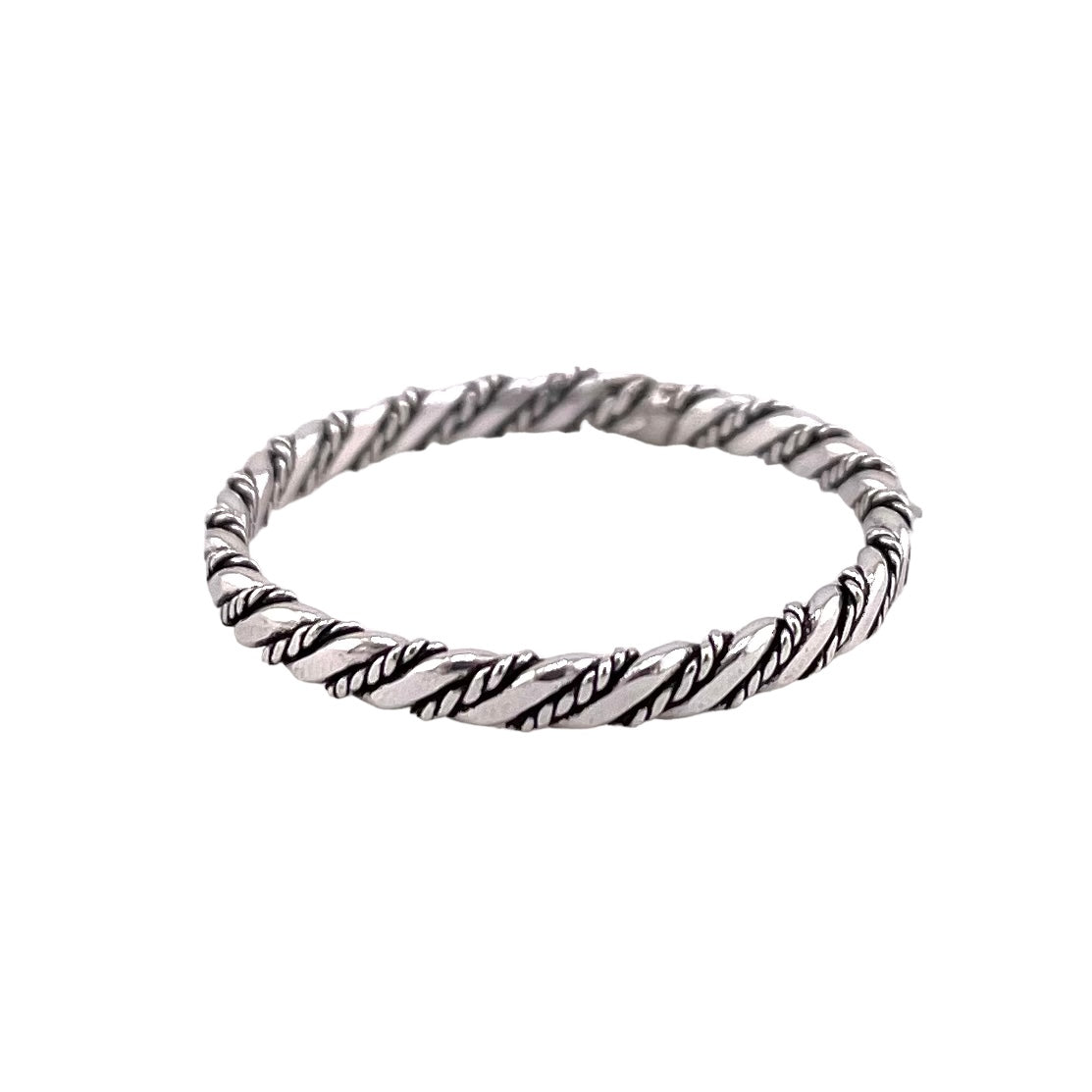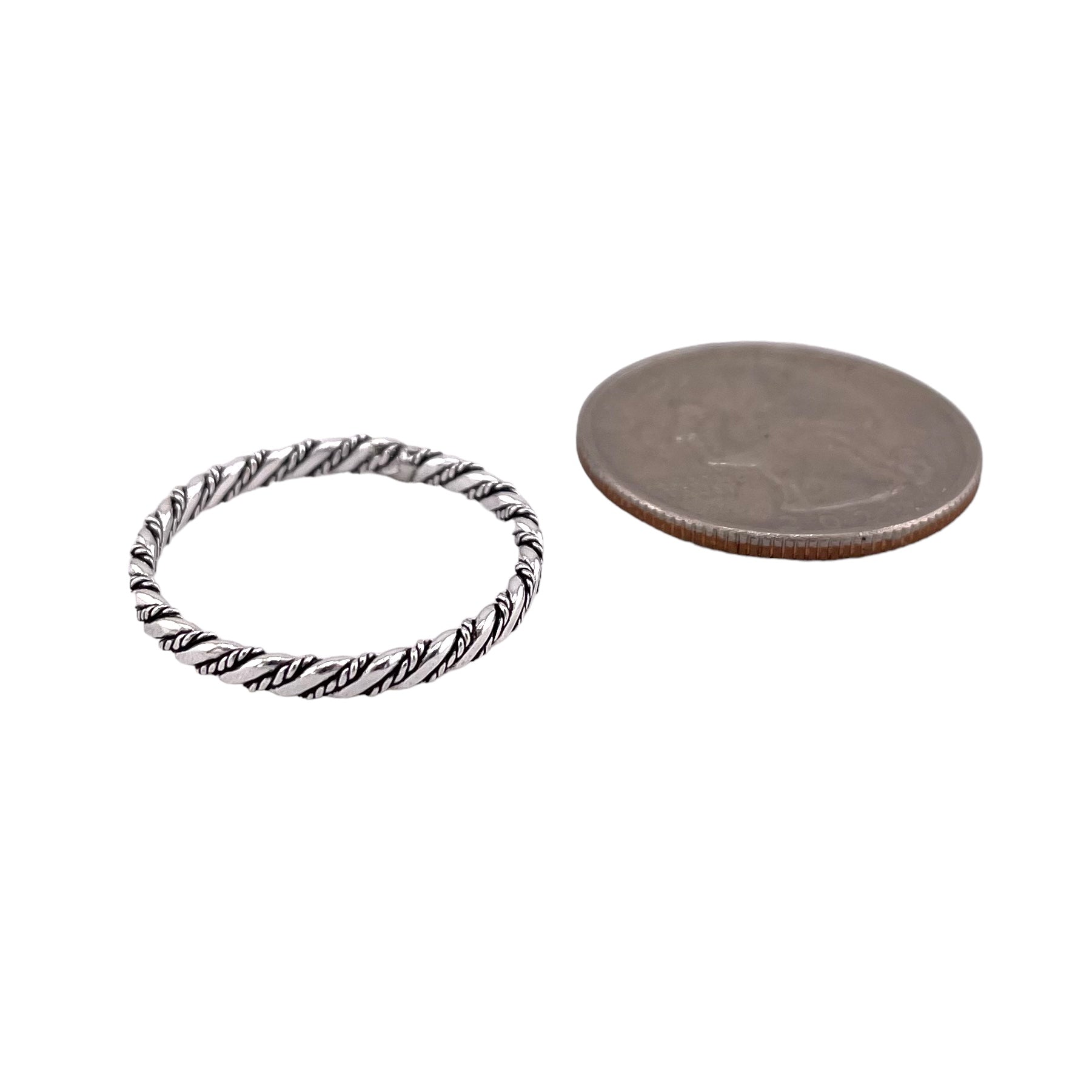 Flat Rope Twist 3mm Band Ring Sterling Silver. This ring measures 3mm wide. It is available in sizes 4-10.