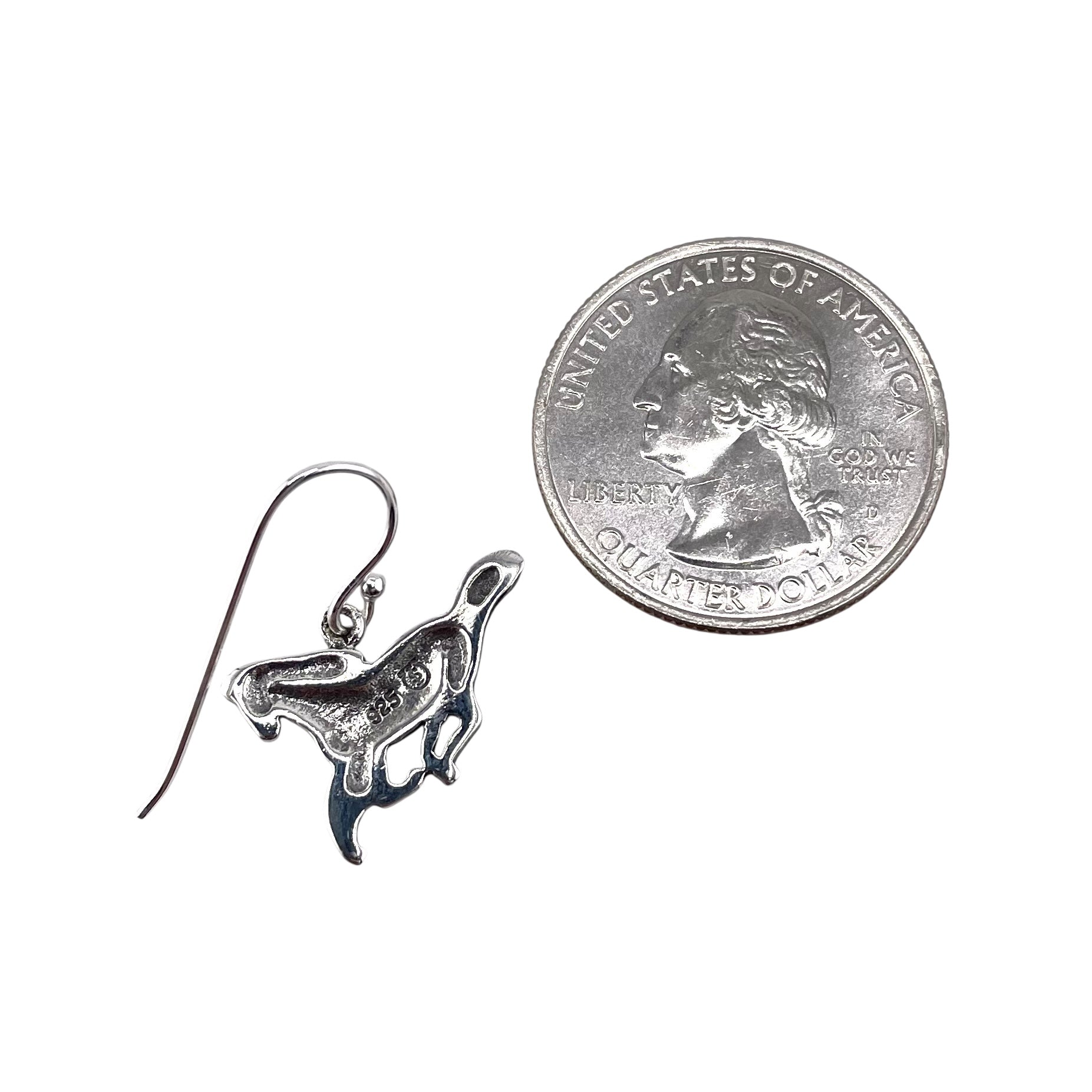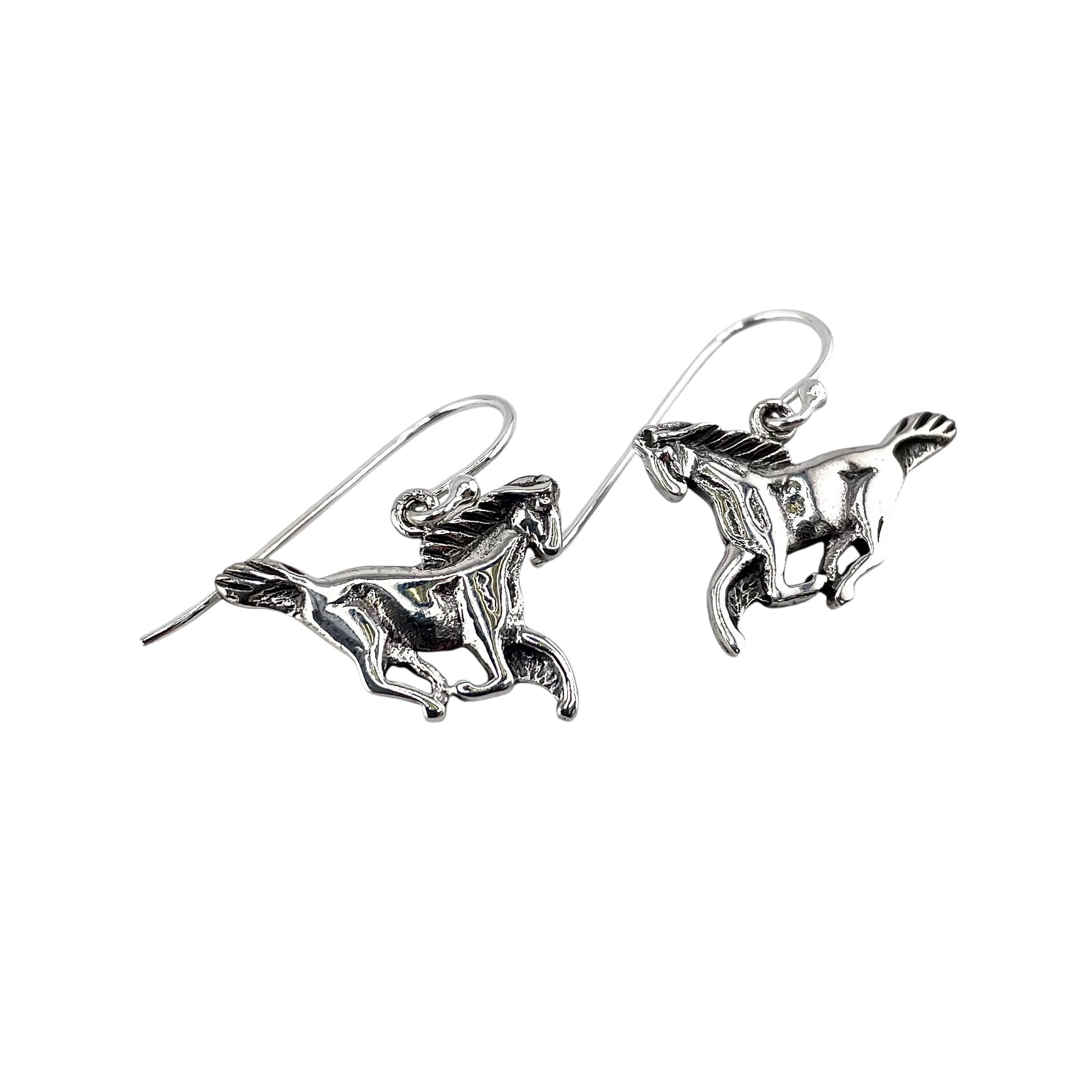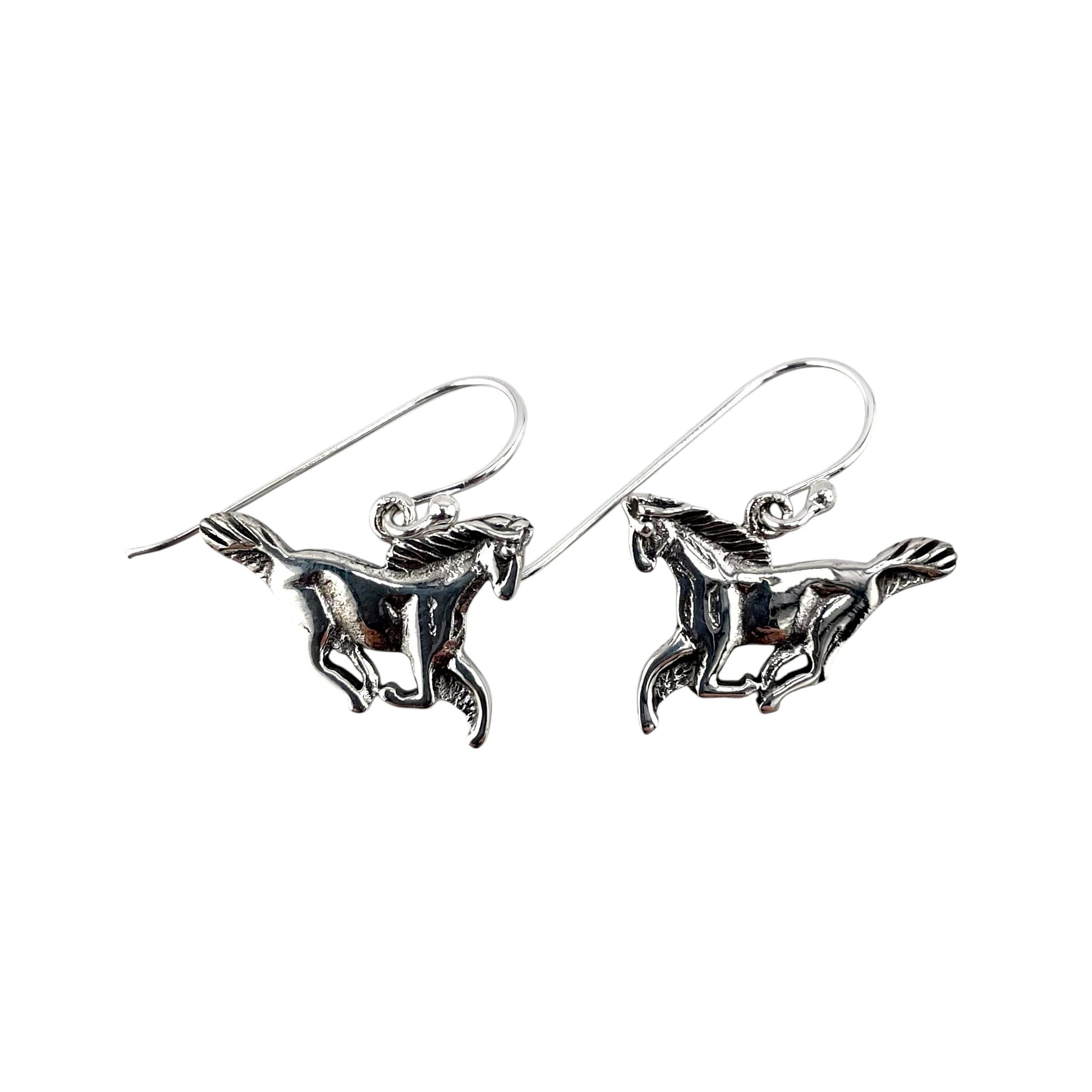 Galloping Horse Dangle Earrings Sterling Silver. Measurements of these earrings are 1-7/8" L and 3/4"W.