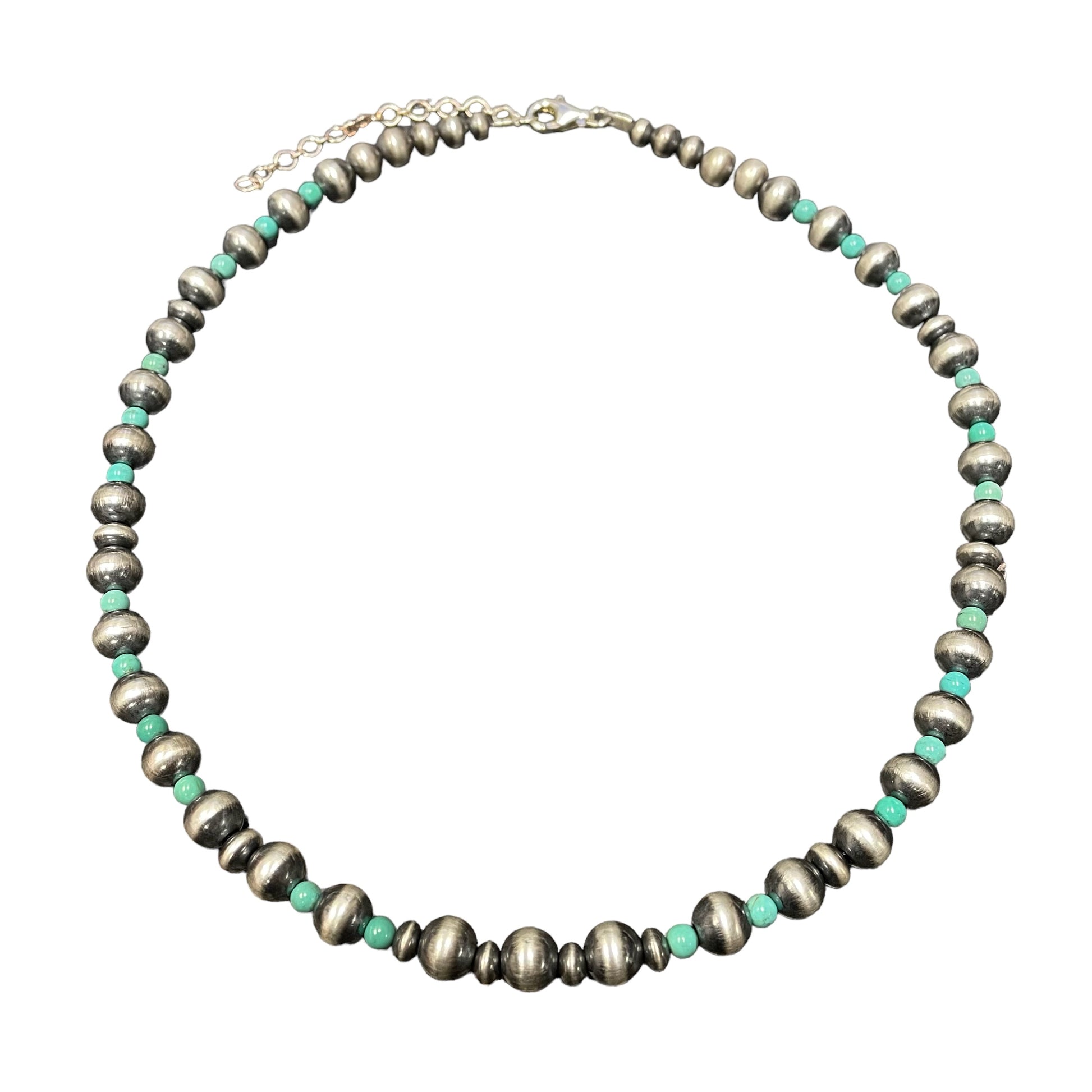 Green Turquoise Desert Pearl Bead Necklace Sterling Silver