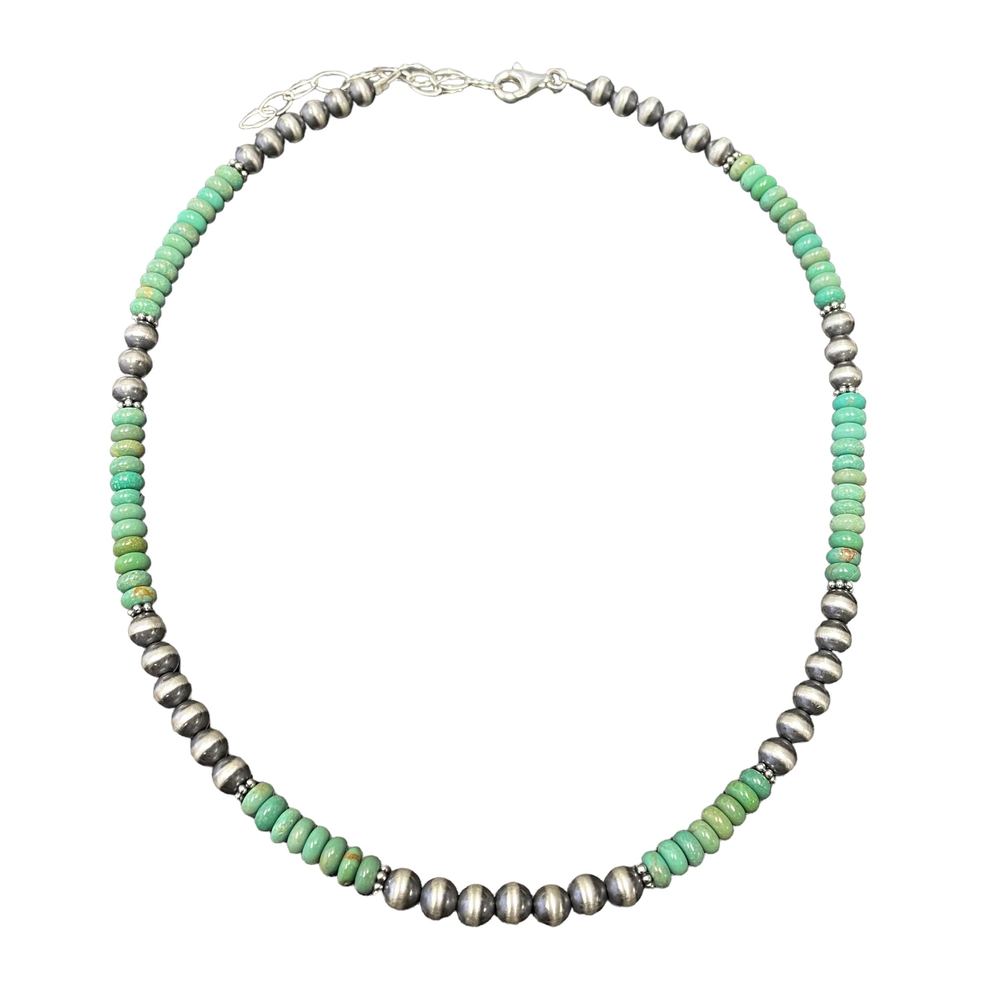 Green Turquoise Desert Pearl Bead Necklace Sterling Silver