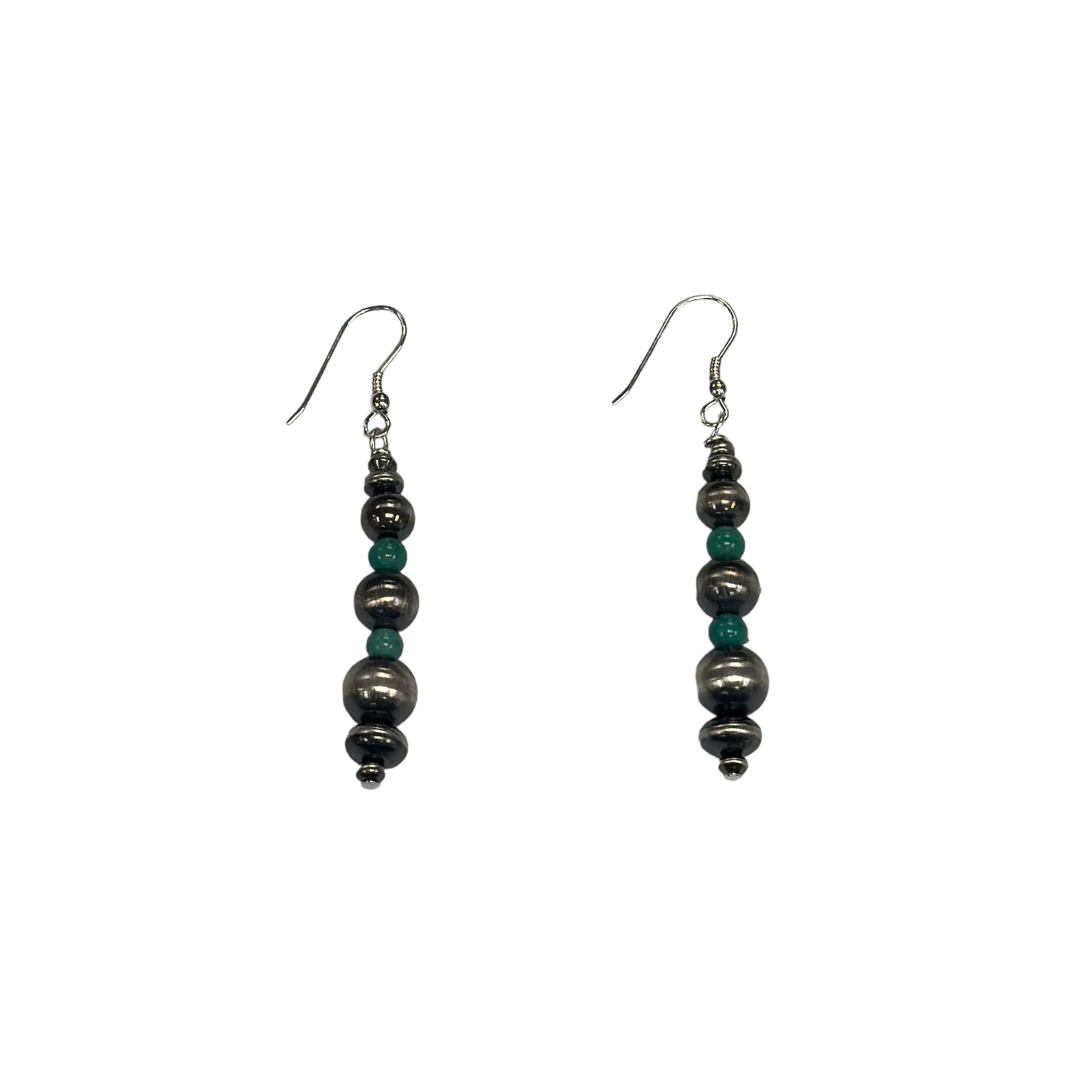 Green Turquoise Desert Pearl Bead Dangle Earrings Sterling Silver