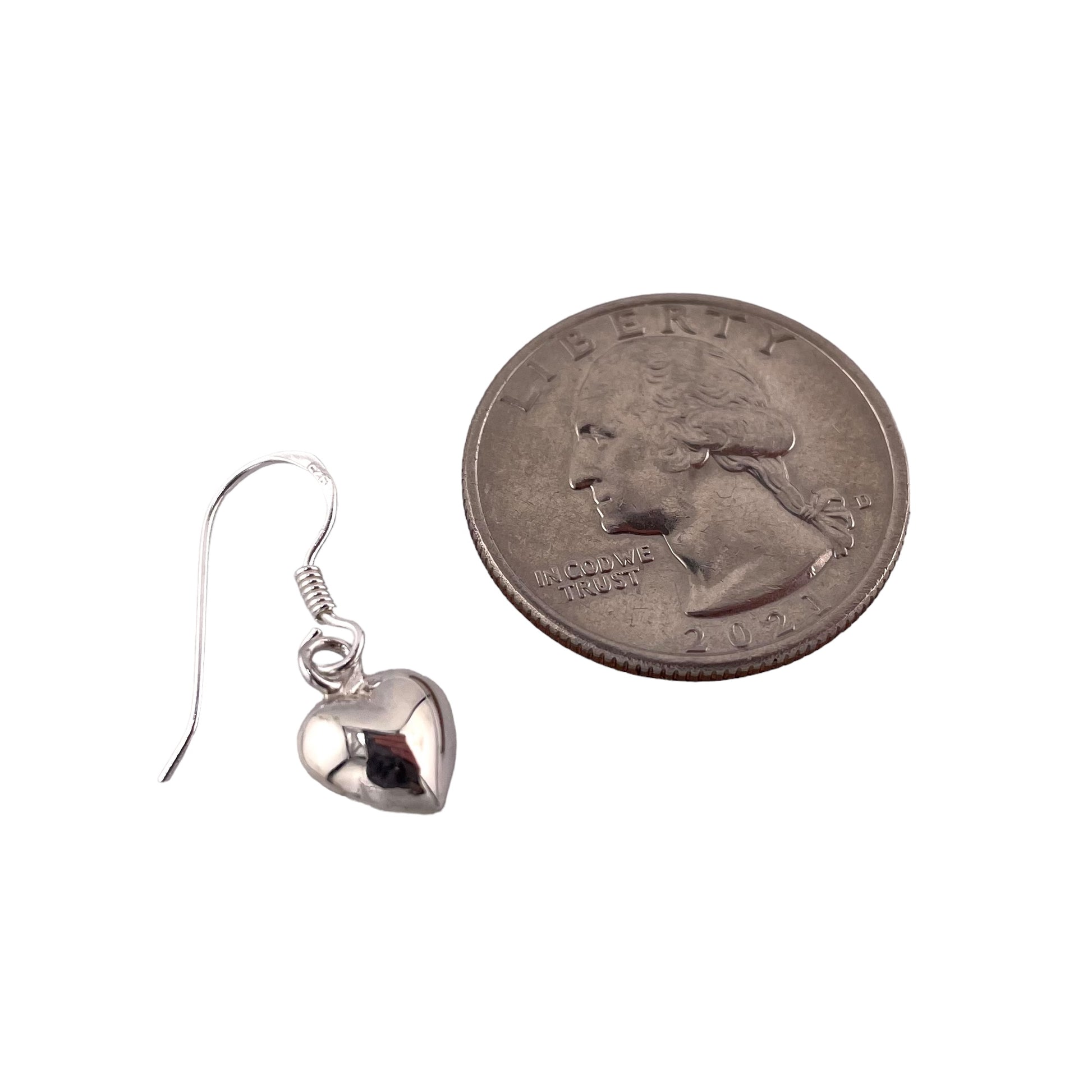 Heart Dangle Earrings Sterling Silver. Measurements of these earrings are 1" L and 3/8"W.Â