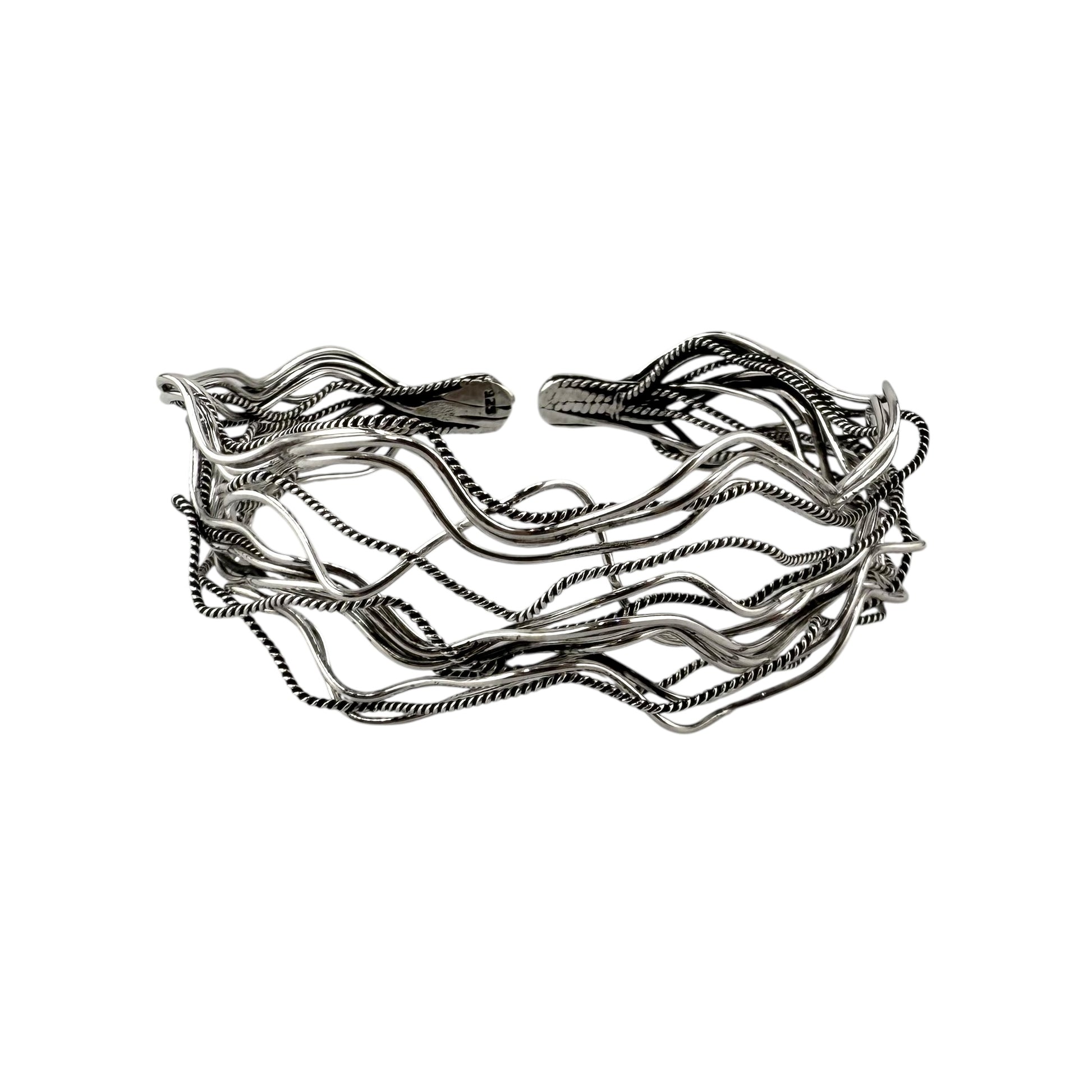 Intertwined Wire Row Cuff Bracelet Sterling Silver. Measurements of this bracelet are 26mm wide.