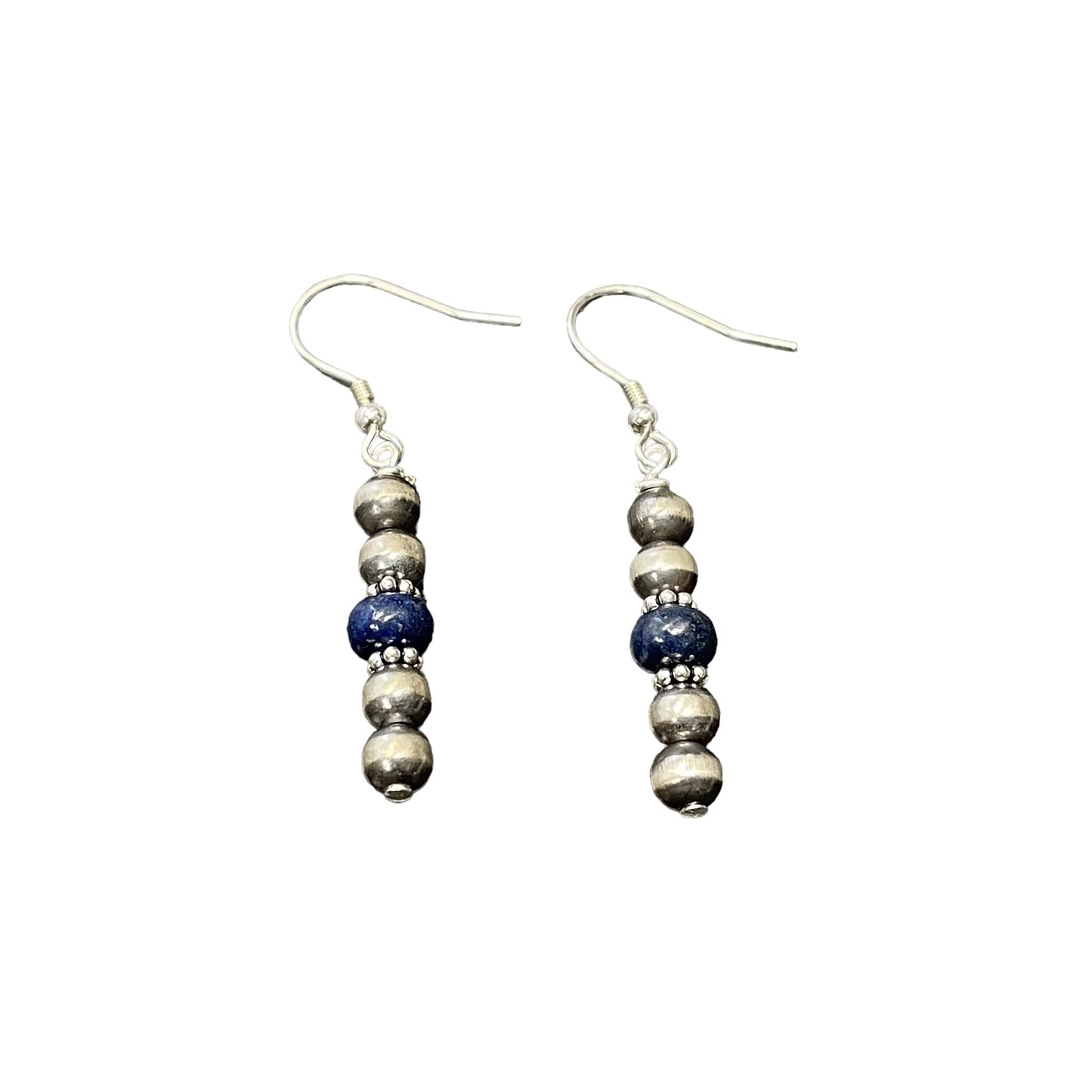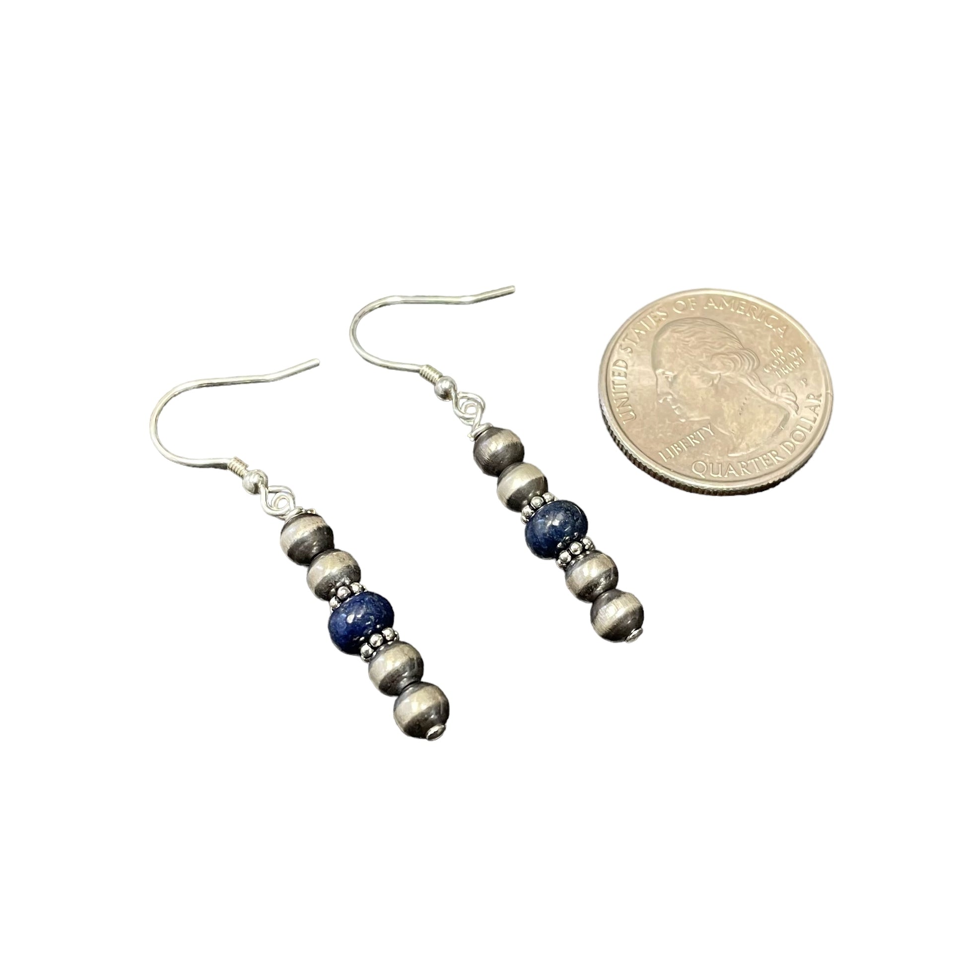 Lapis Desert Pearl Bead Dangle Earrings Sterling Silver