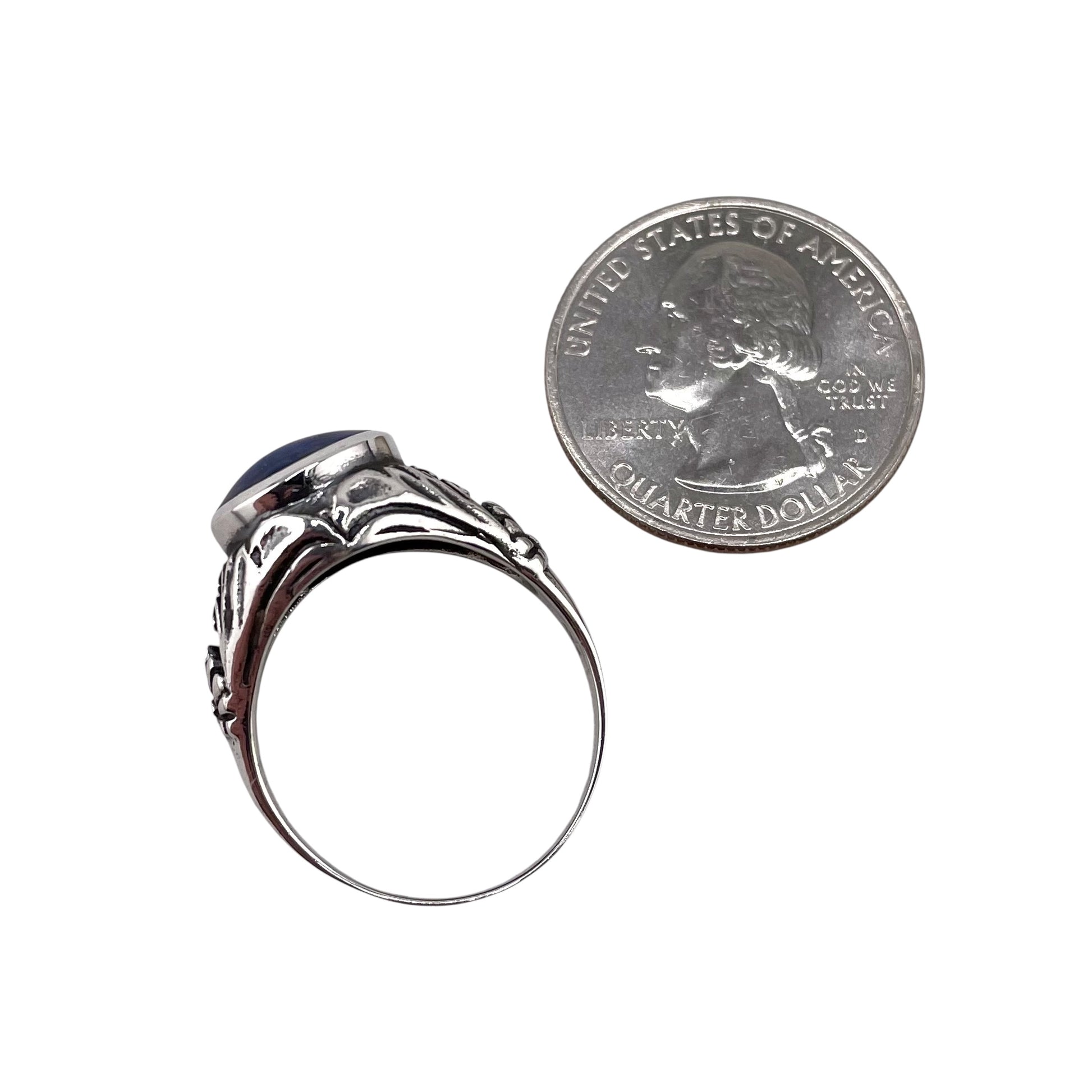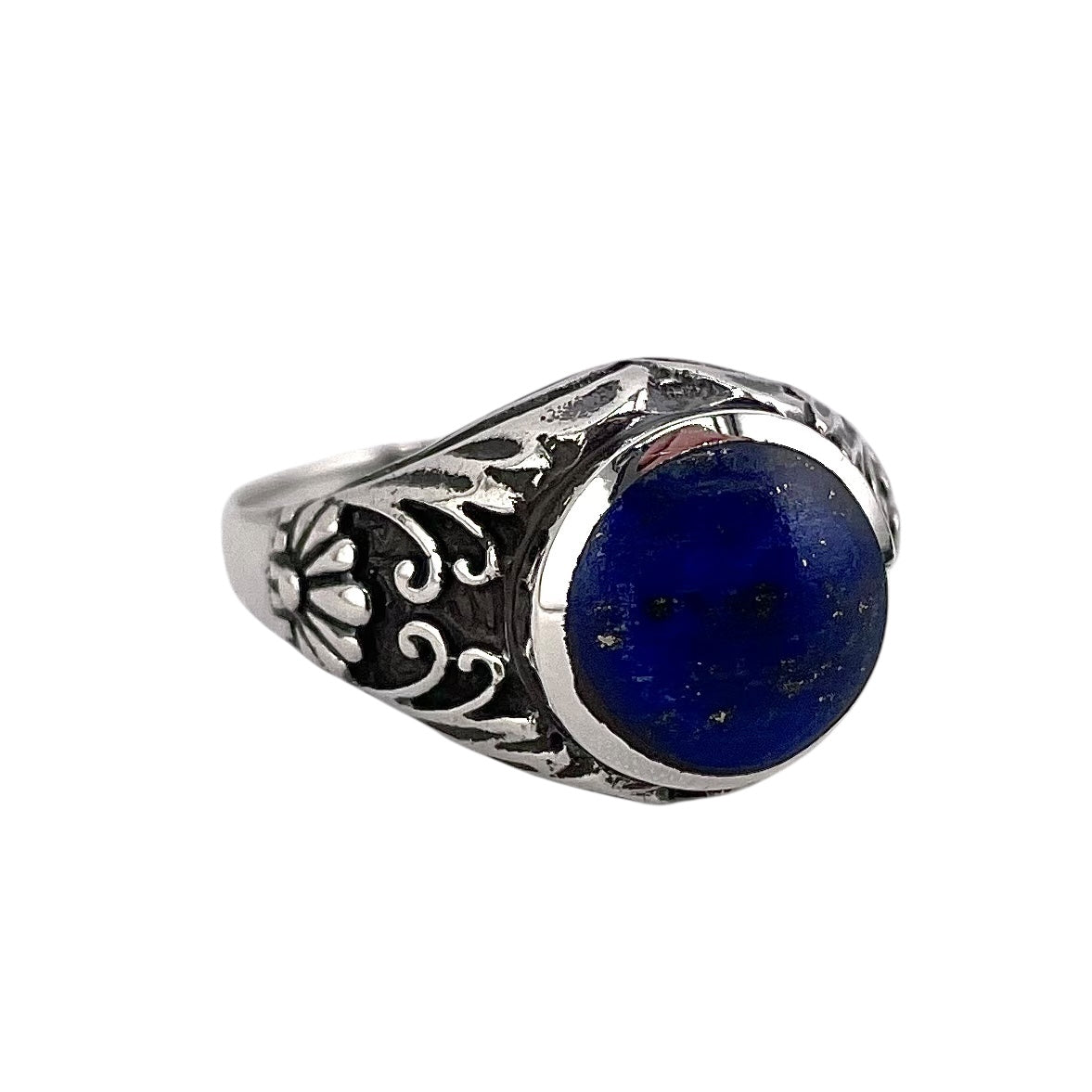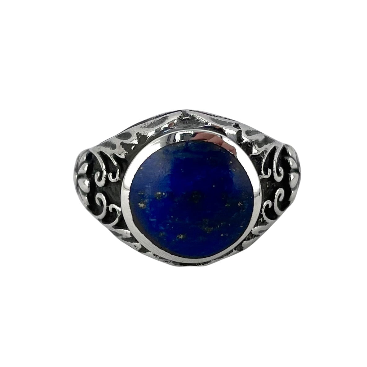 Lapis Stone Circle Flower Ring Sterling Silver. Ring measures 1/2" wide.