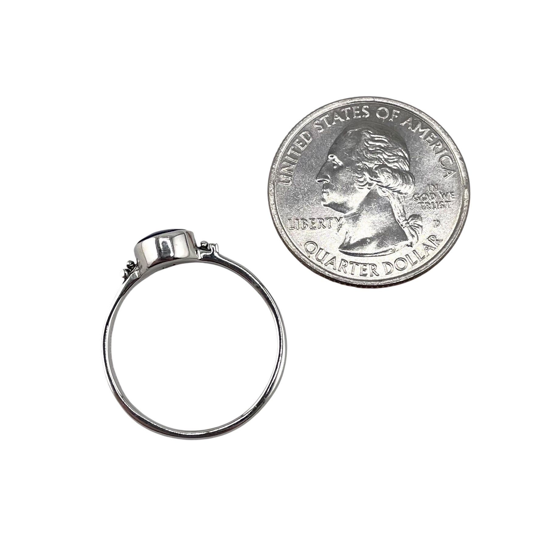 Lapis Stone Circle Ring Sterling Silver. Ring measures 1/4" wide.