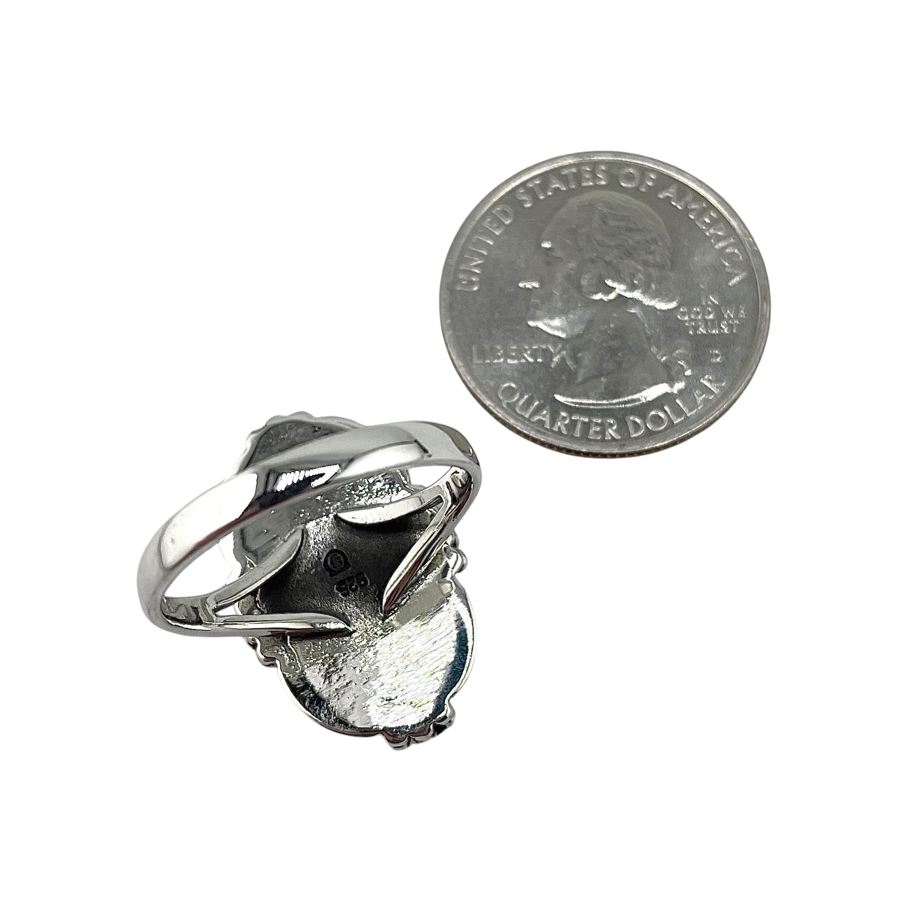 Lapis Stone Oval Rope Bead Ring Sterling Silver. Ring centerpiece measures 1" long and 5/8" wide.