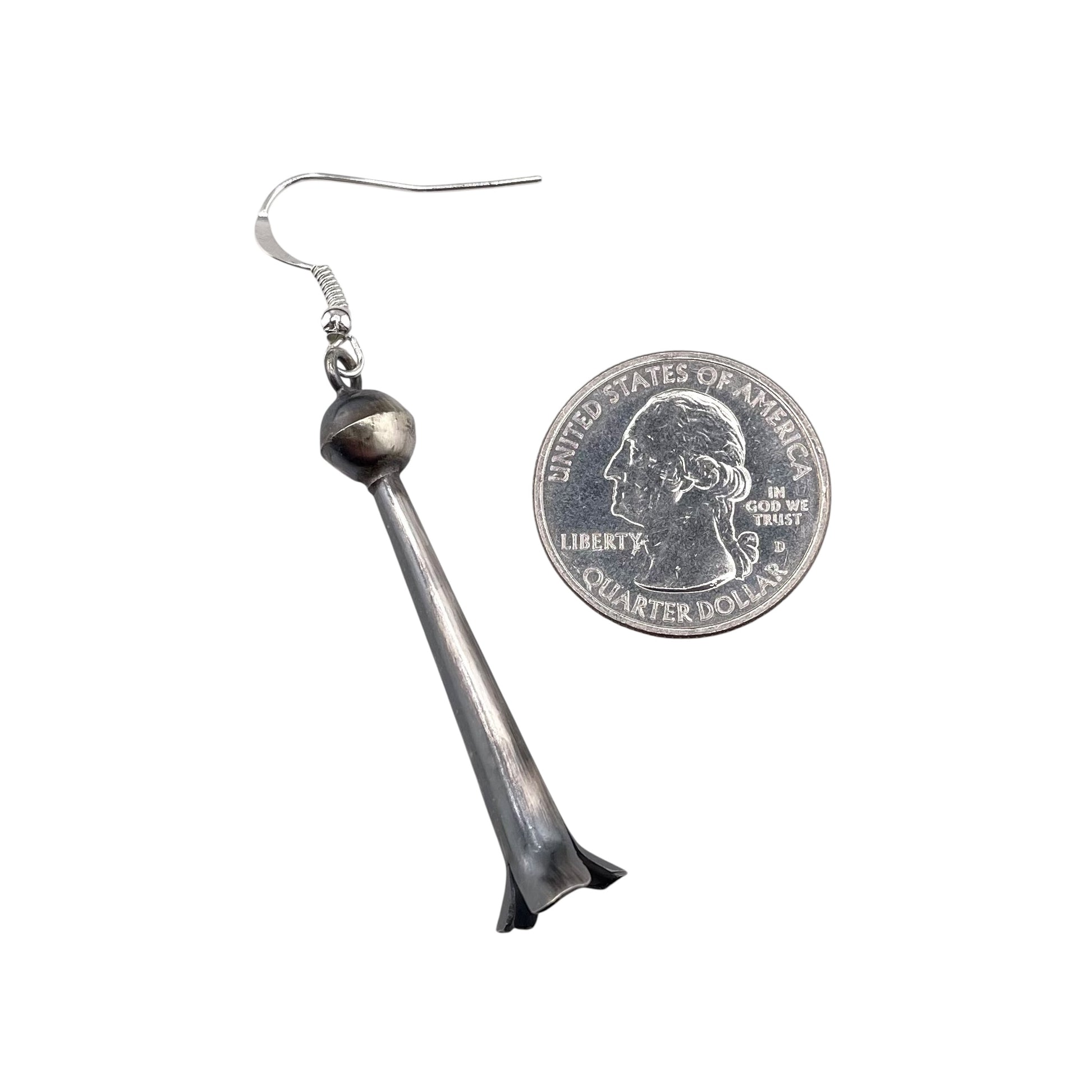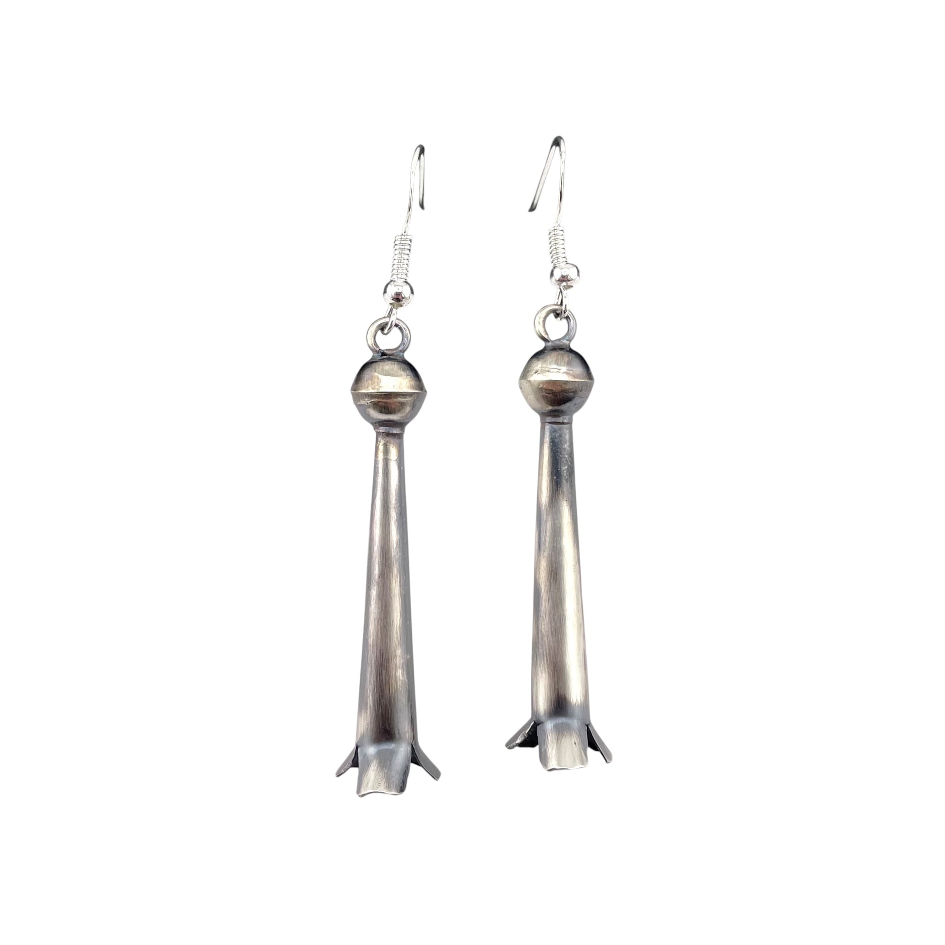 Lenora Garcia Sterling Silver Navajo Squash Blossom Long Dangle Earrings