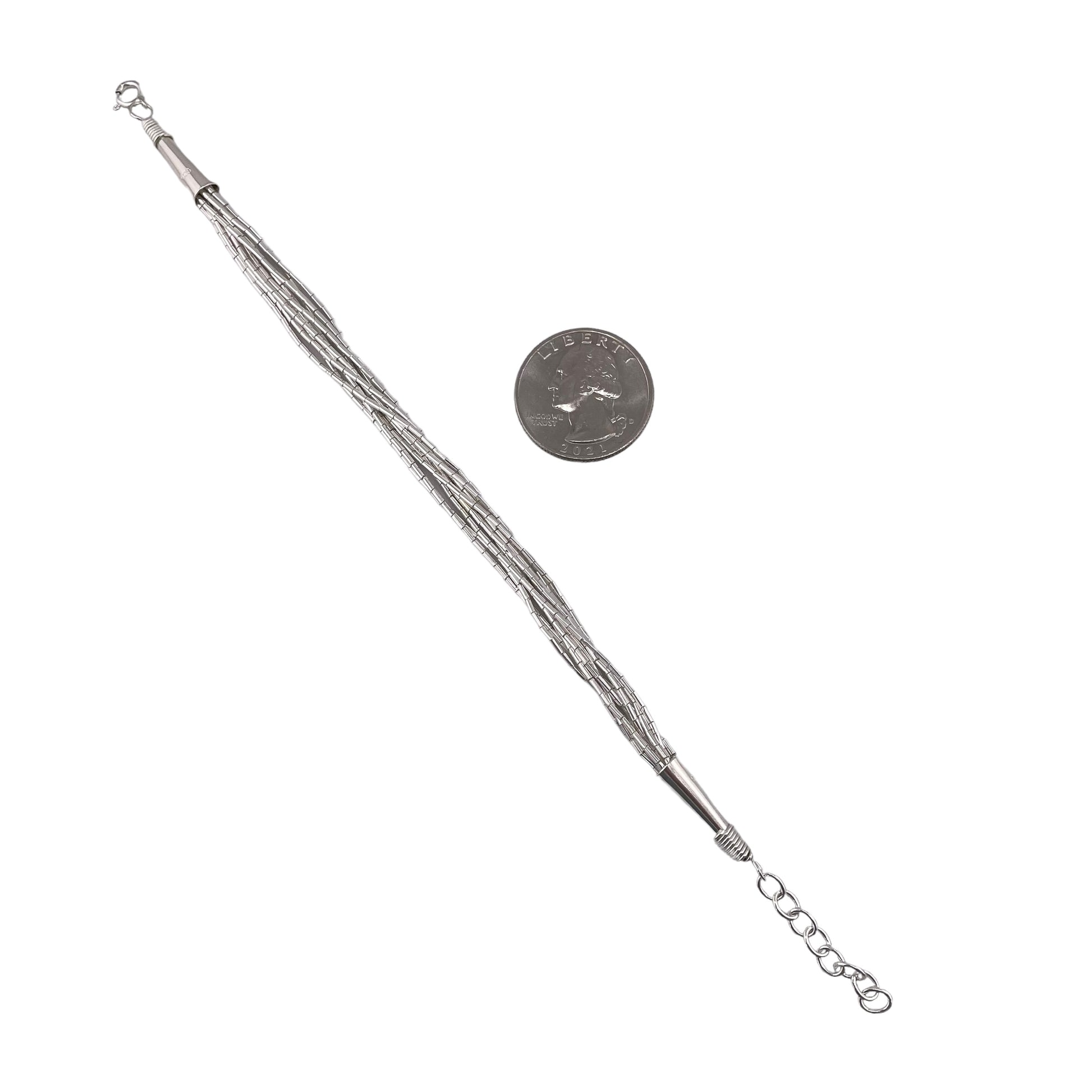 Liquid Silver 10-Strand Bracelet Sterling Silver. Measurements of this bracelet are 7" long, with a 1- 1/4" extender, for a total of 8- 1/4" length.