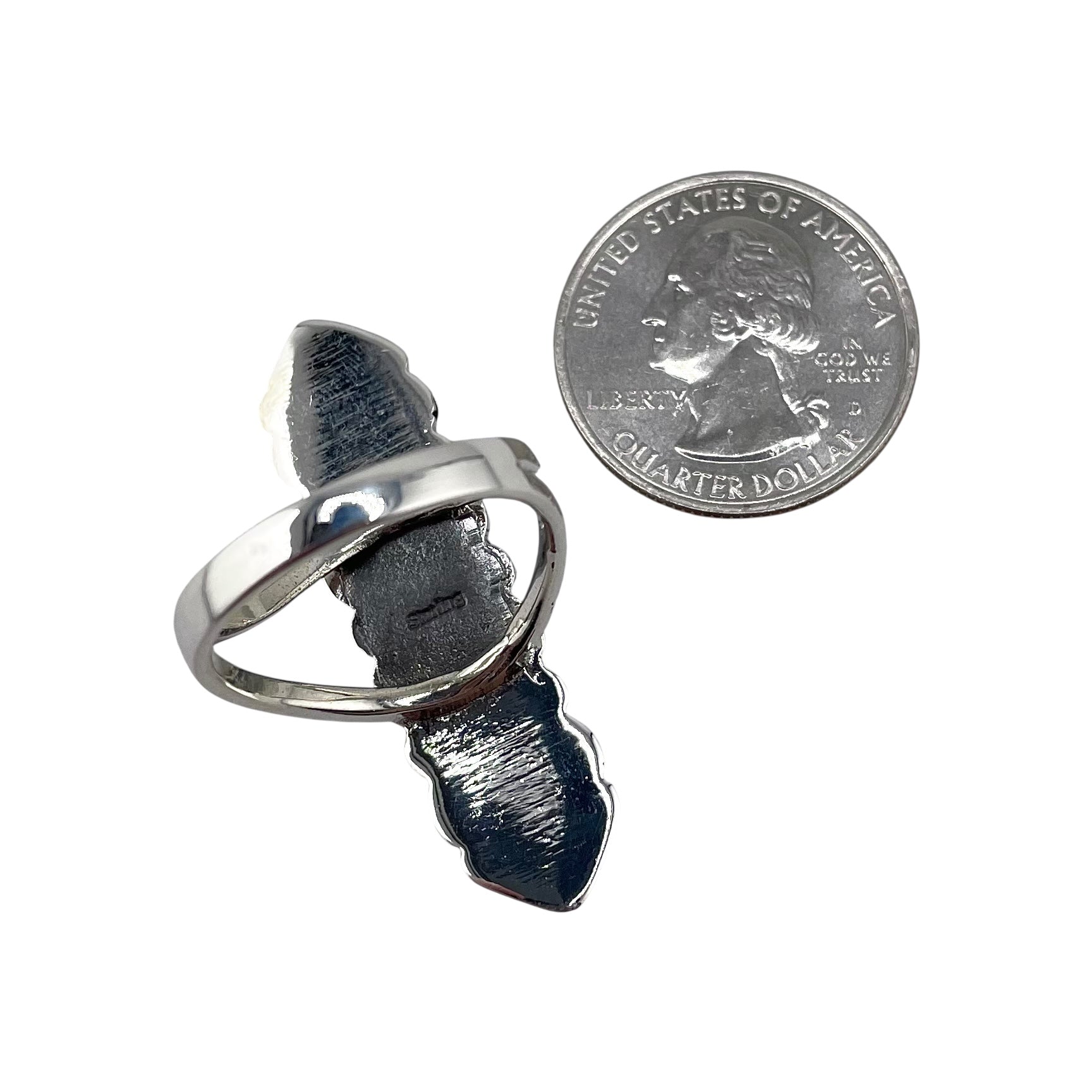 Multi Color 4 Stone Stacked Oval Ring Sterling Silver. Ring centerpiece measures 1-5/8" long by 7/16" wide.