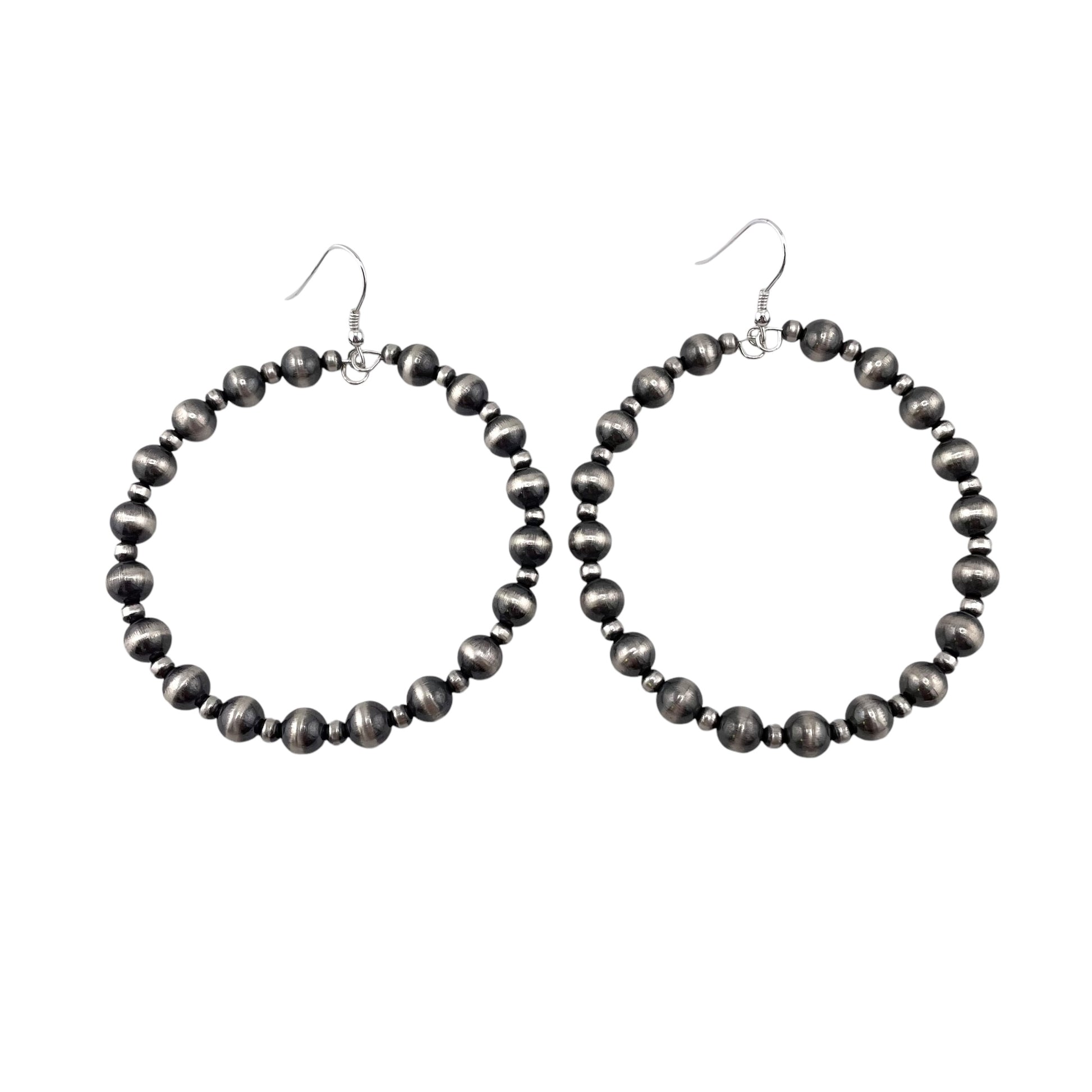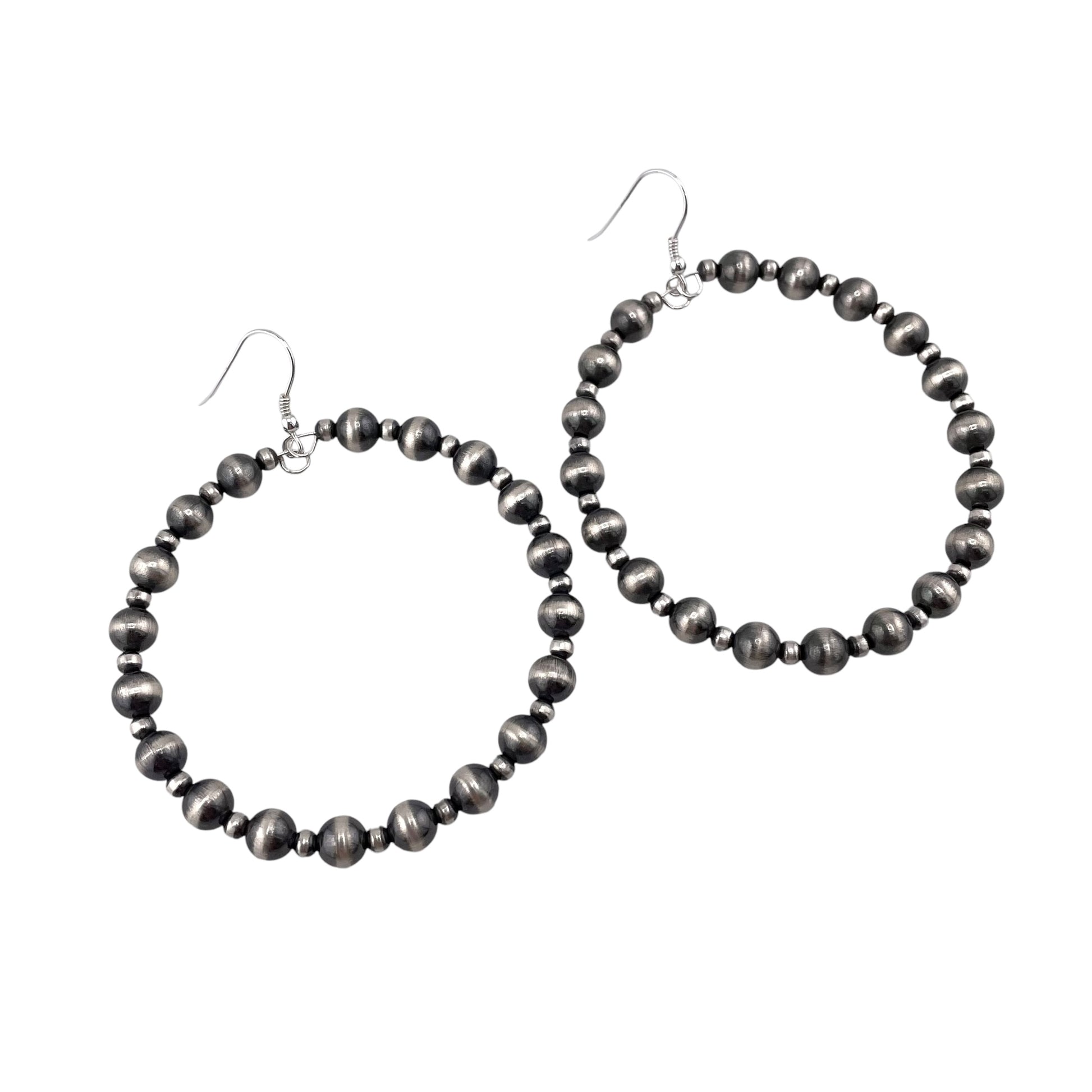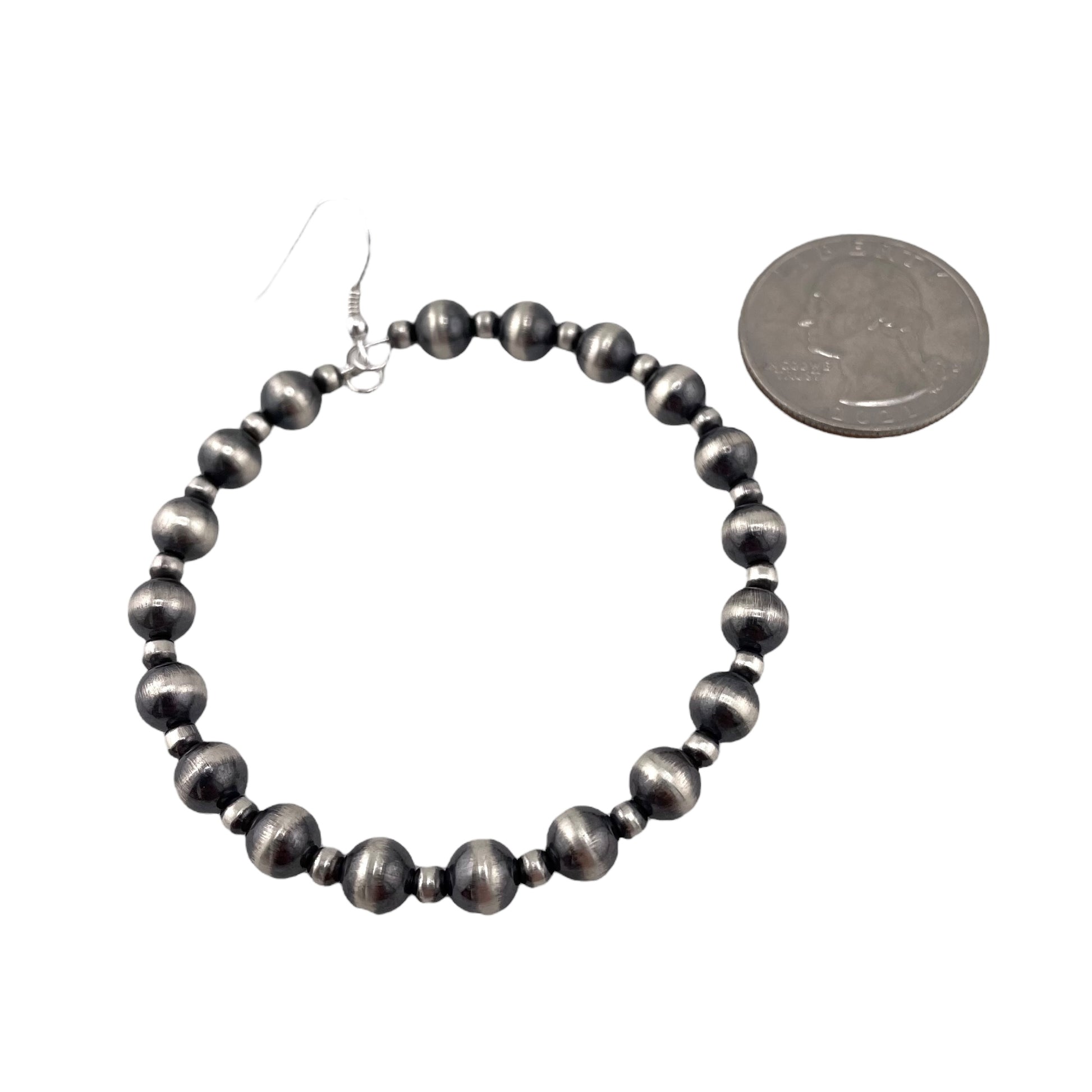 Navajo Pearl Bead Dangle Loop Earrings Sterling Silver. Measurements of these earrings are 3" wide and 2- 1/4" wide.