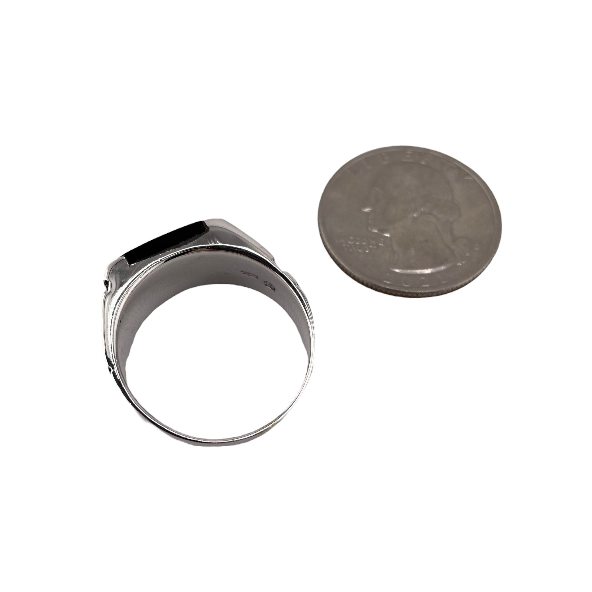 Black Onyx Square Stone Greek Key Mens Ring Sterling Silver. This ring measures 3/8" wide and is available in sizes 8-12.