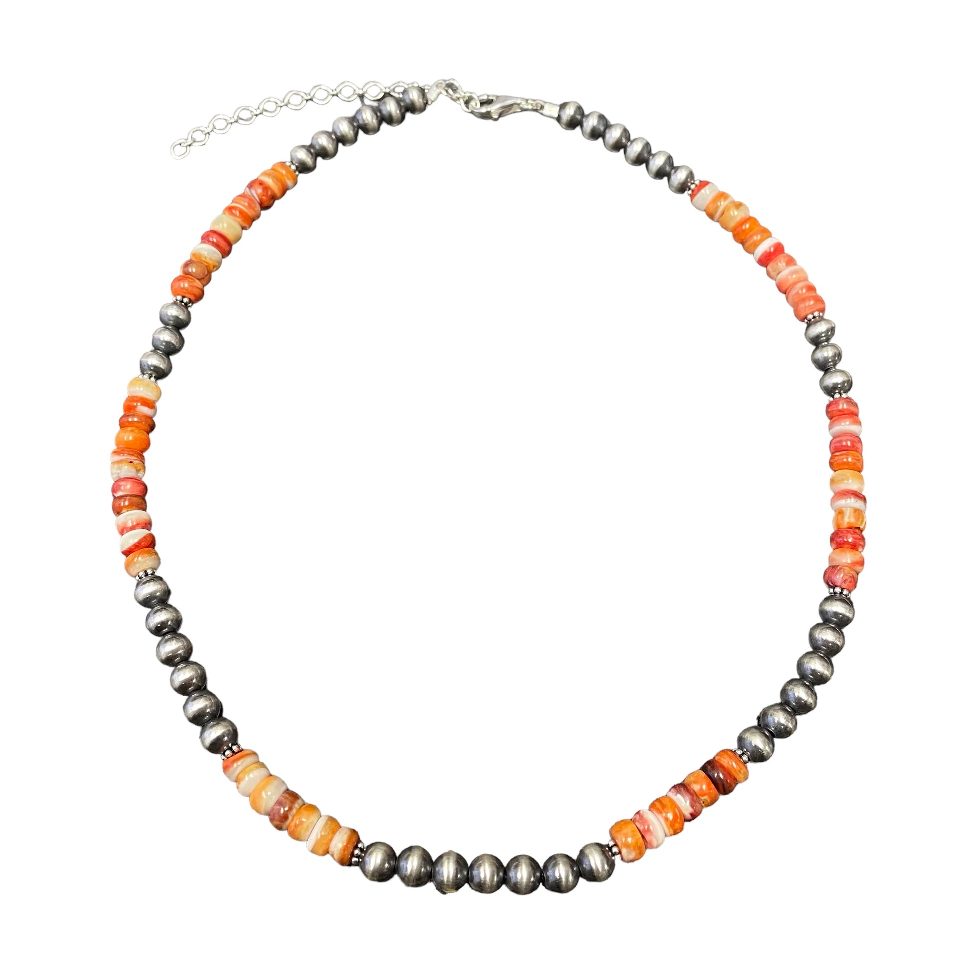 Orange Spiny Oyster Desert Pearl Bead Necklace Sterling Silver