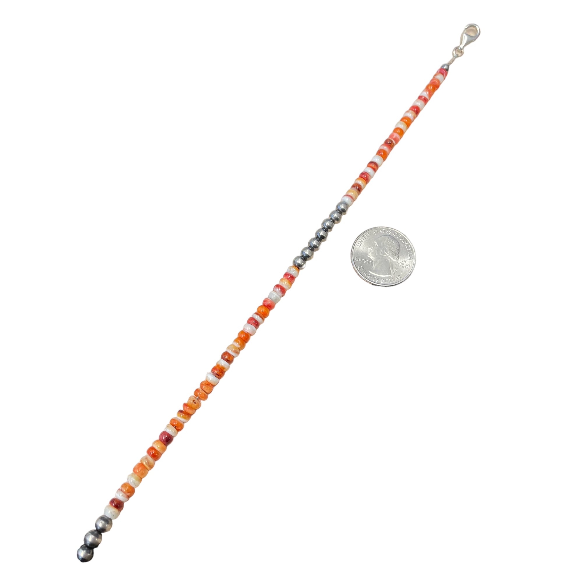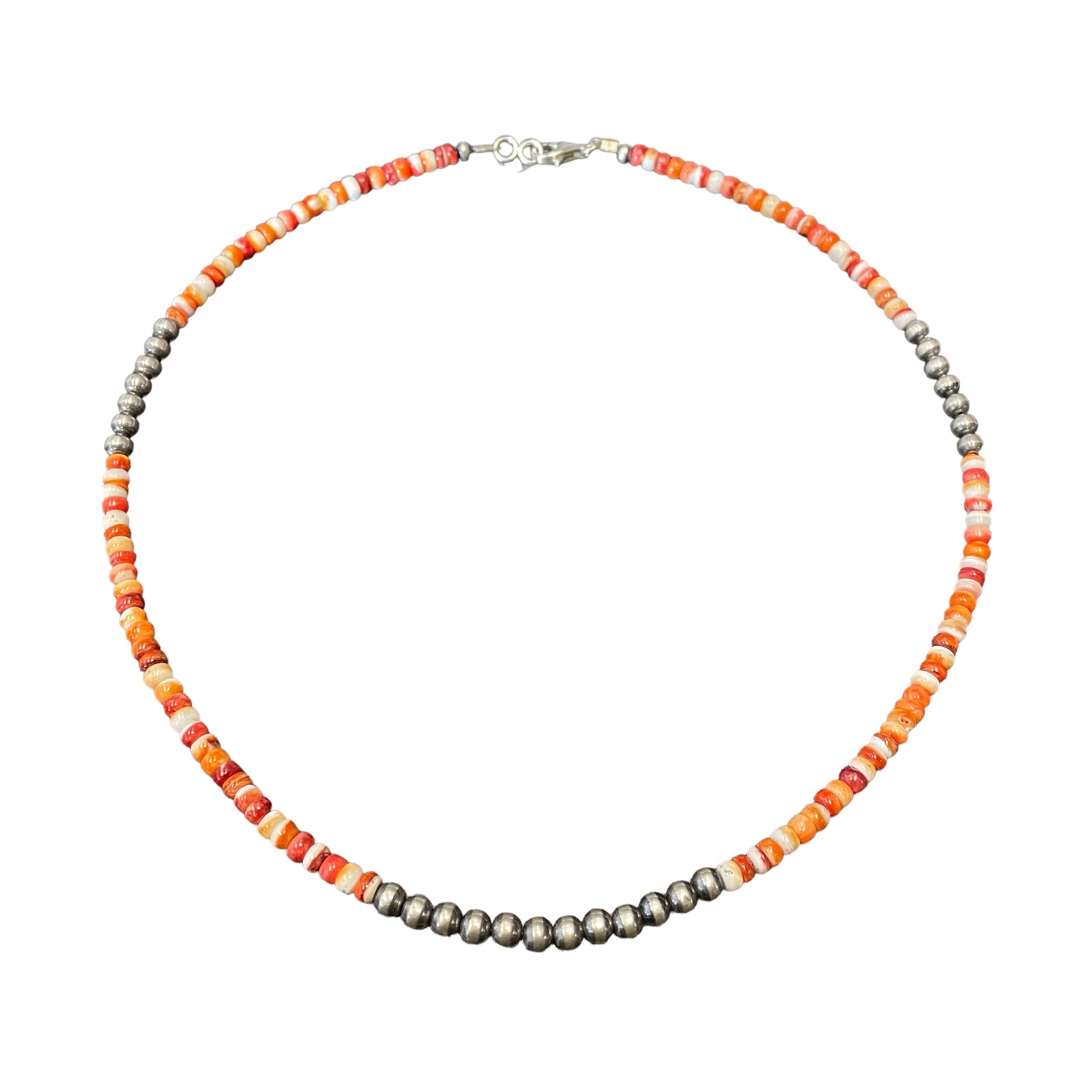 Orange Spiny Oyster Desert Pearl Bead Necklace Sterling Silver