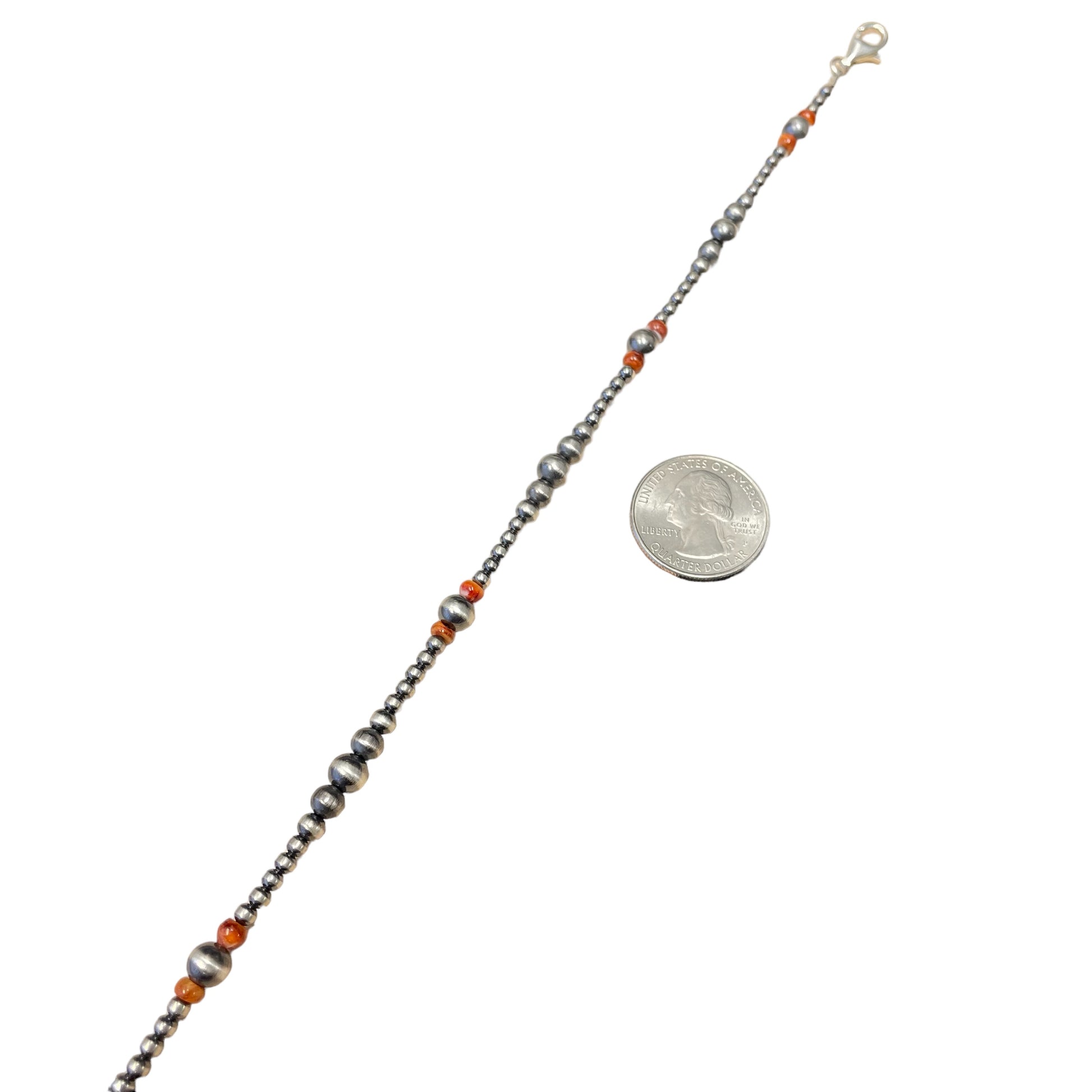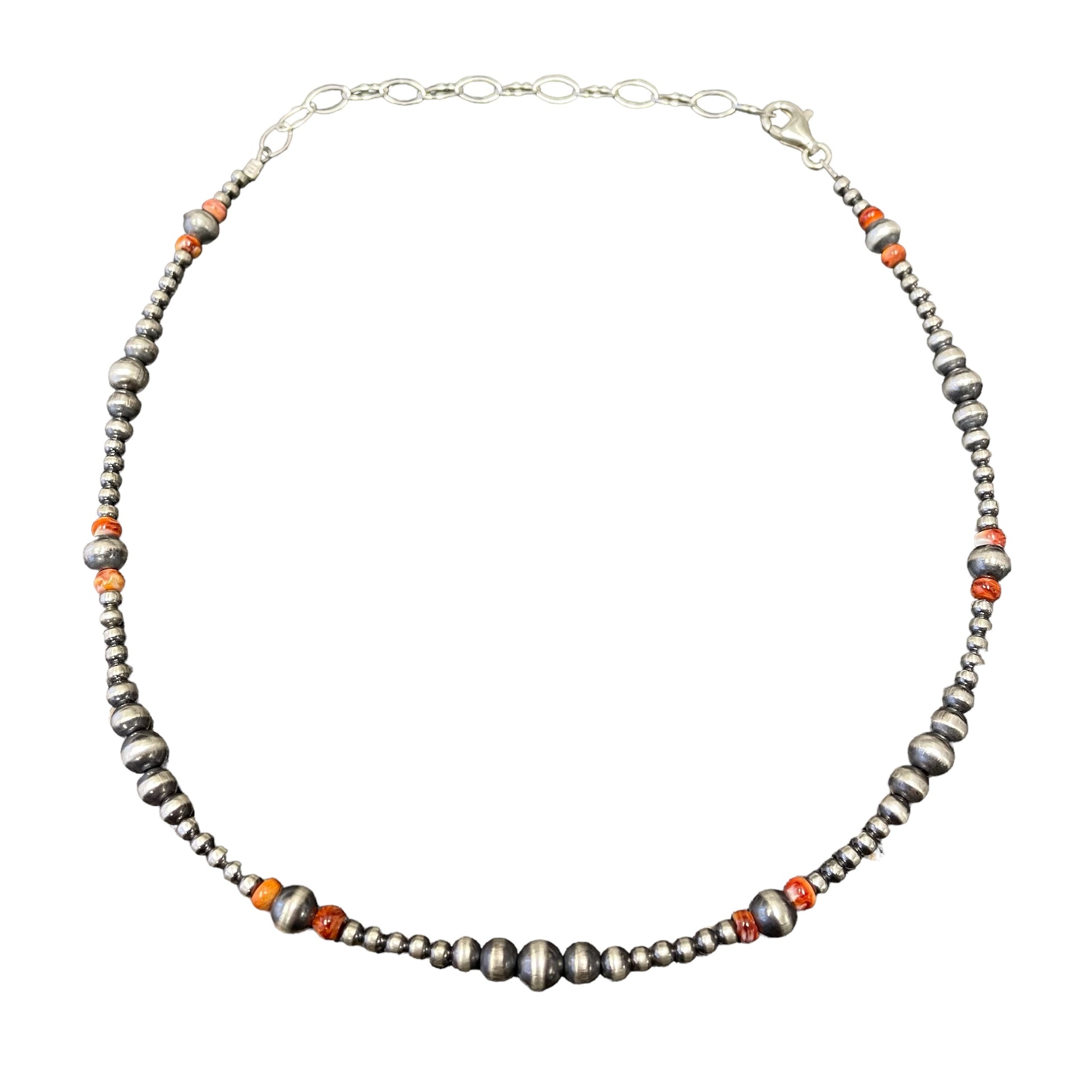 Orange Spiny Oyster Desert Pearl Bead Necklace Sterling Silver