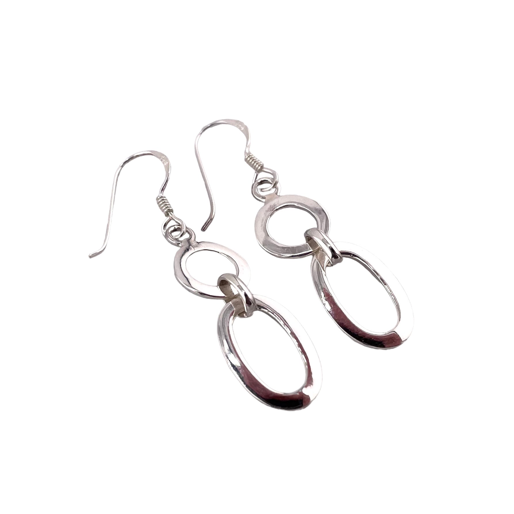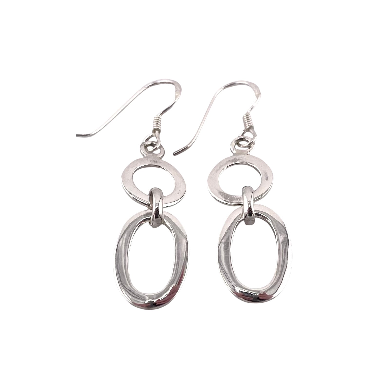 Oval Circle Link Earrings Sterling Silver