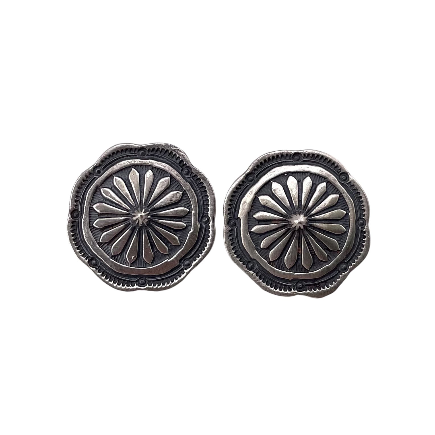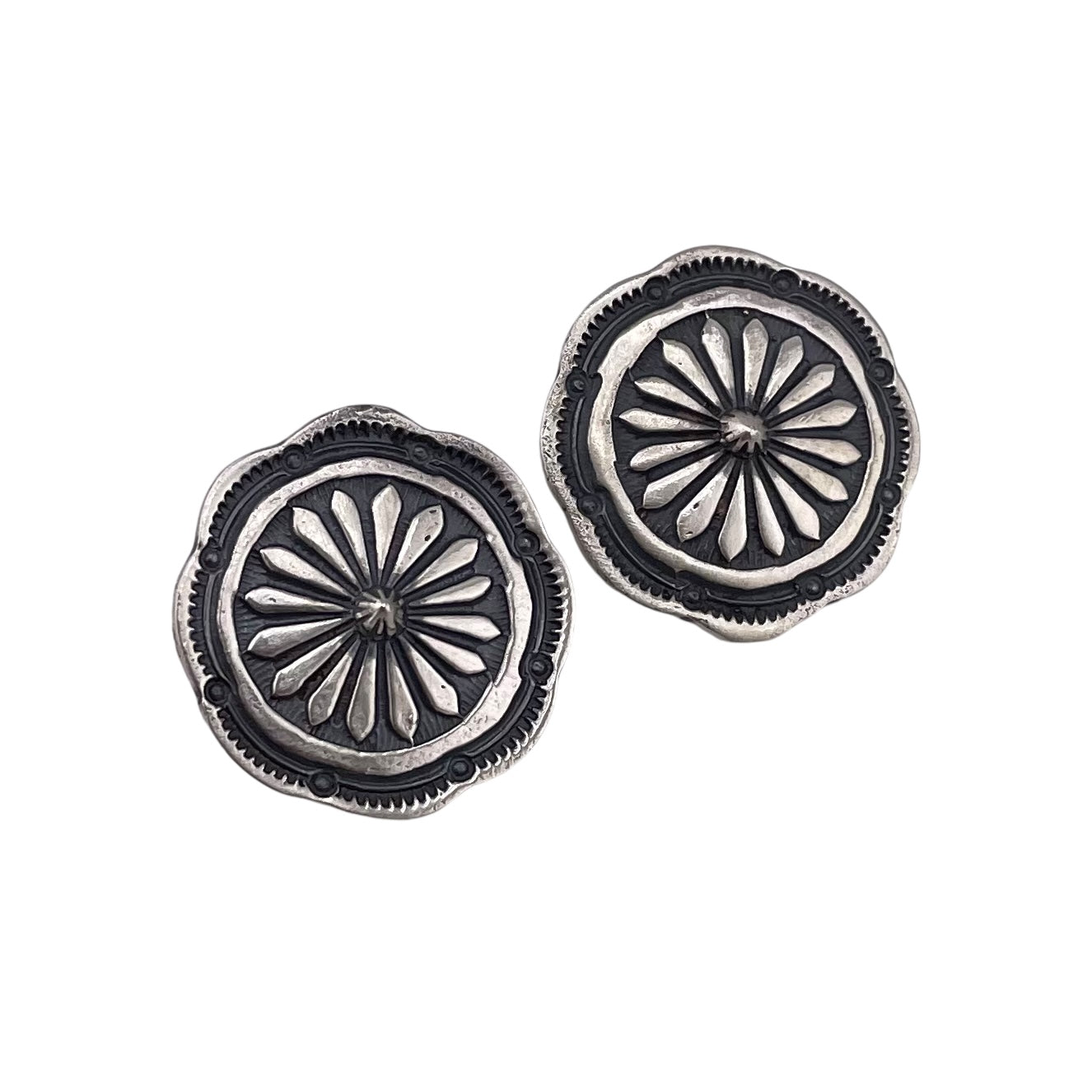 Oxidized Concho Flower Imprint Navajo Earrings Sterling Silver