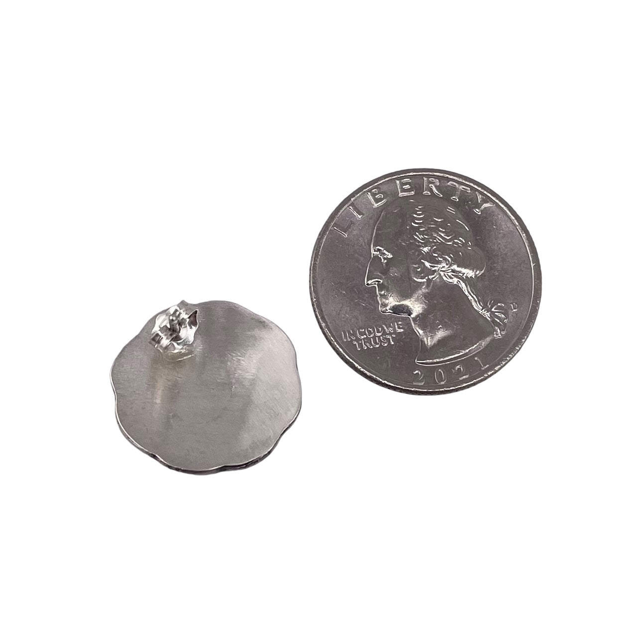 Oxidized Concho Flower Imprint Navajo Earrings Sterling Silver. Measurements of these earrings are 13/16" long and 13/16" wide.