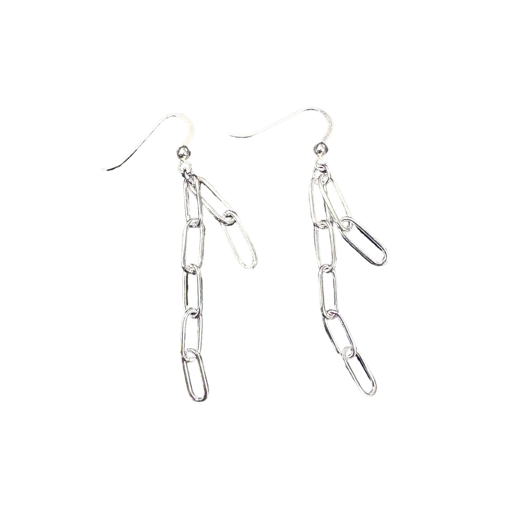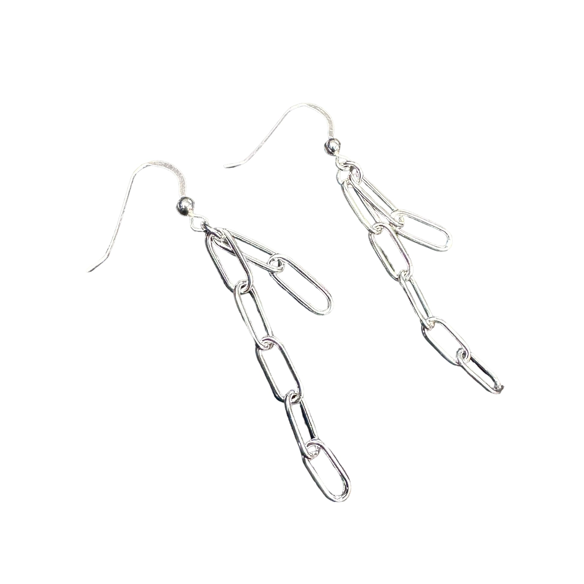 Paper Clip 2 Strand Dangle Earrings Sterling Silver