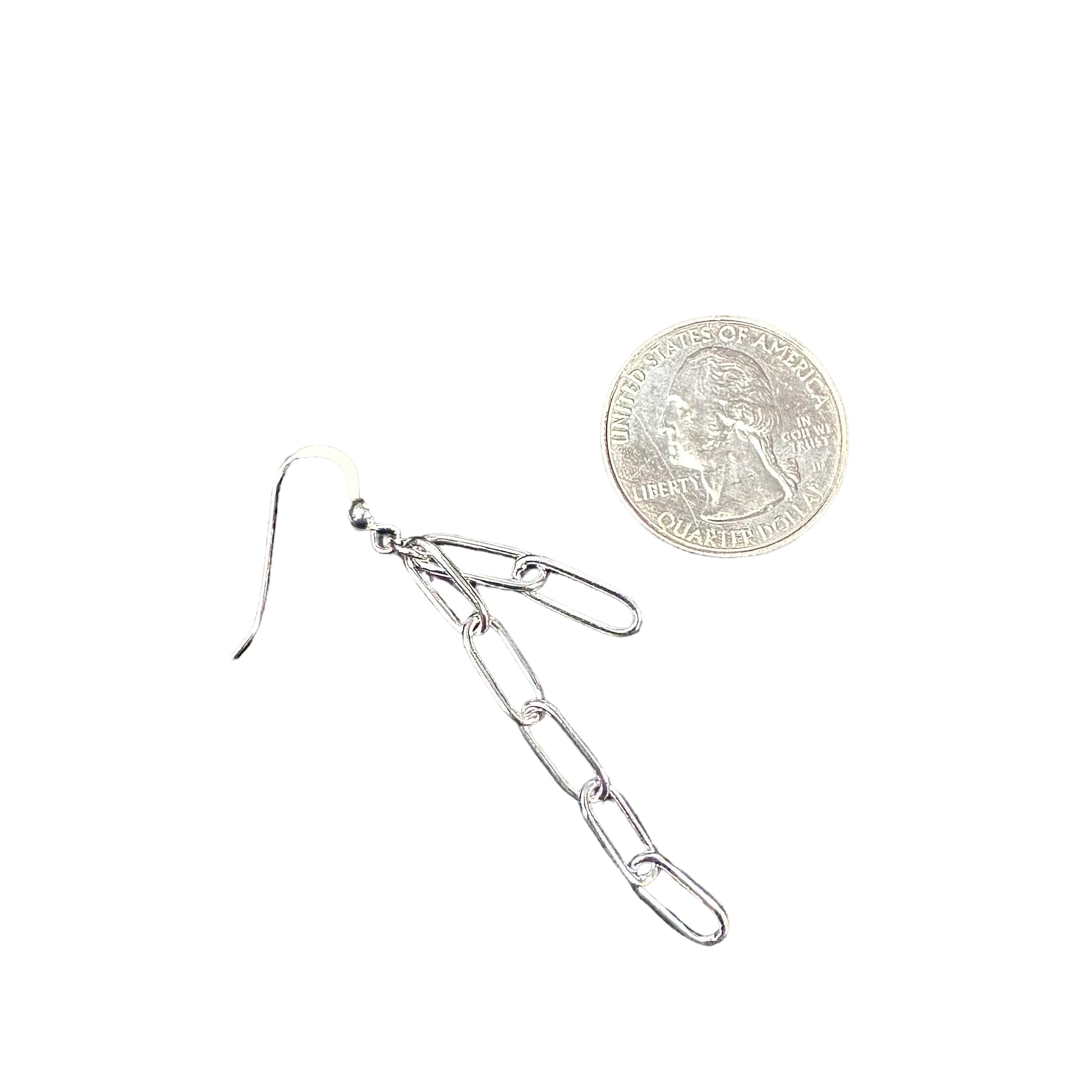Paper Clip 2 Strand Dangle Earrings Sterling Silver. Measurements of these earrings are 2- 1/2 inch long and 1/4 inch wide.Â