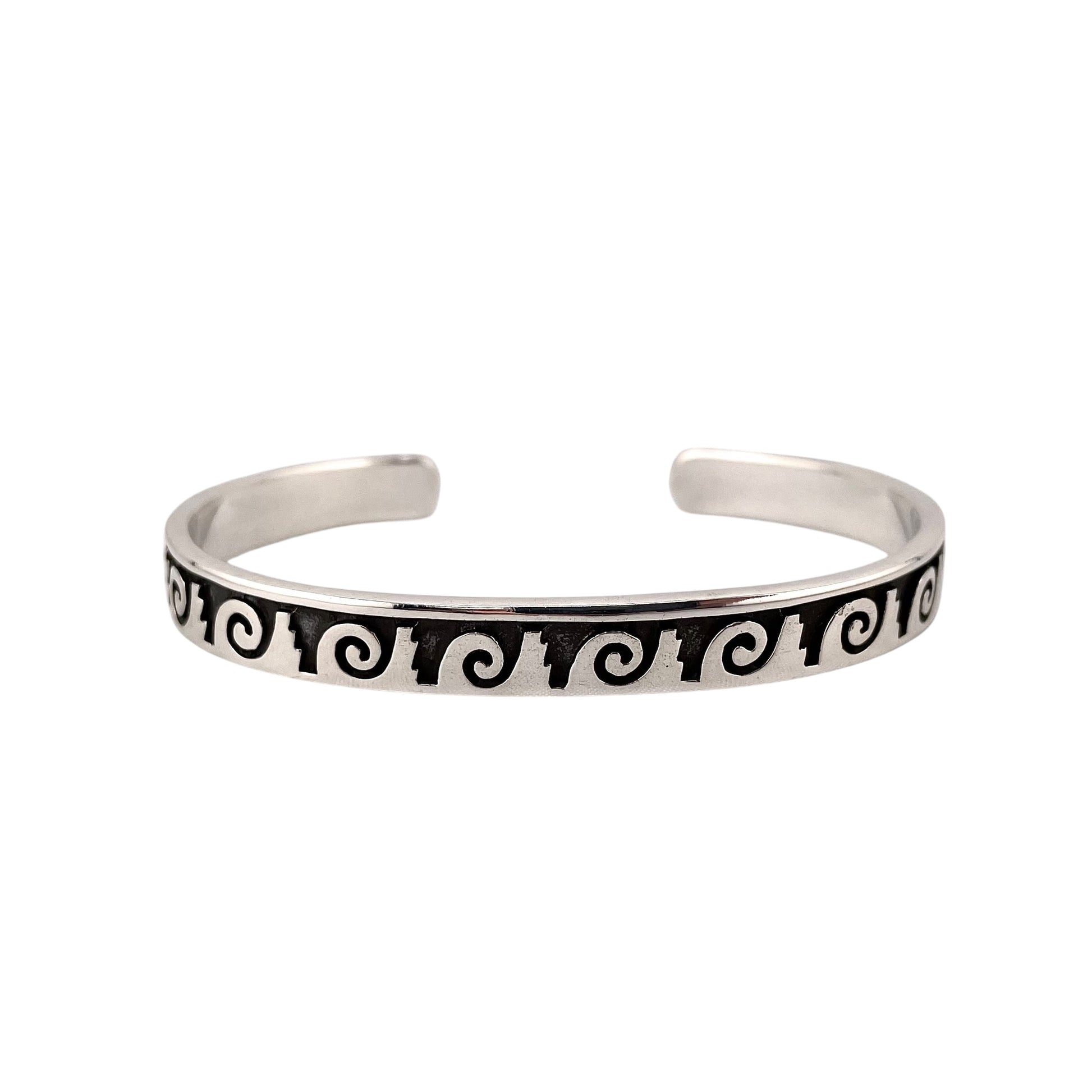 Pattern Cuff Bracelet Sterling Silver. Measurements of this bracelet are 7mm wide and 5-1/2" along the inside.