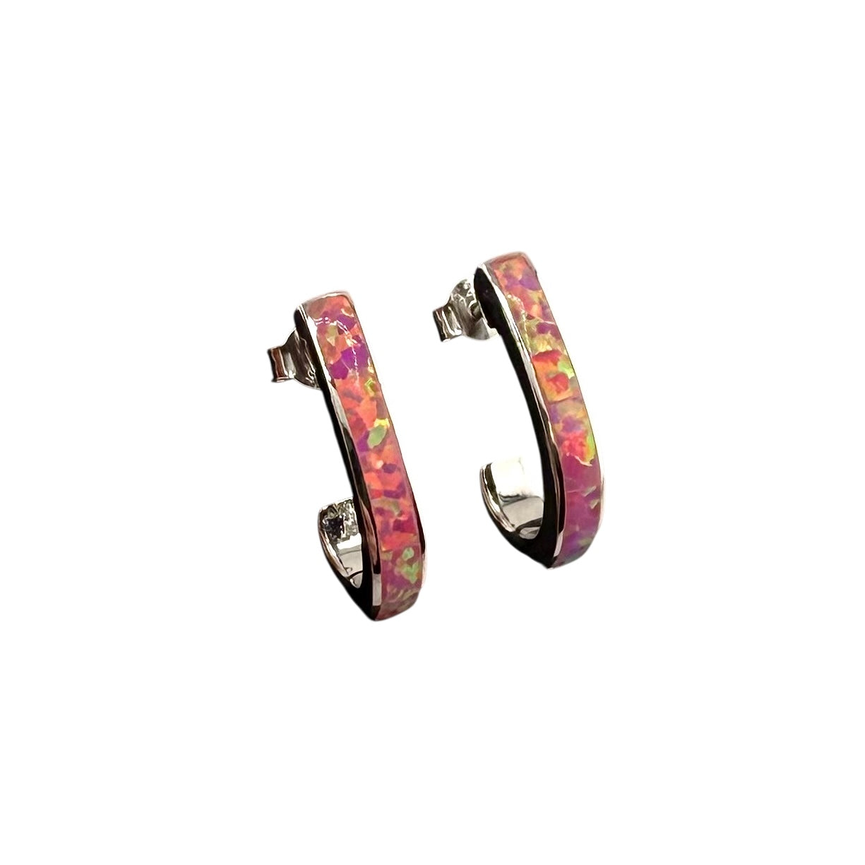 Pink Lab Opal Rounded Post Earrings Sterling Silver. Measurements of these earrings are 3/4" long and 1/8" wide.