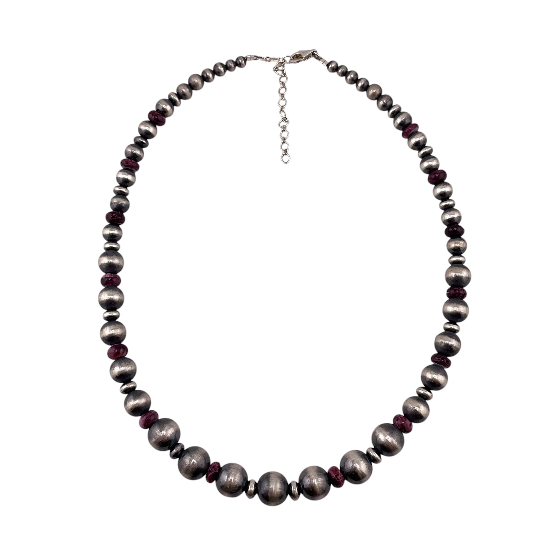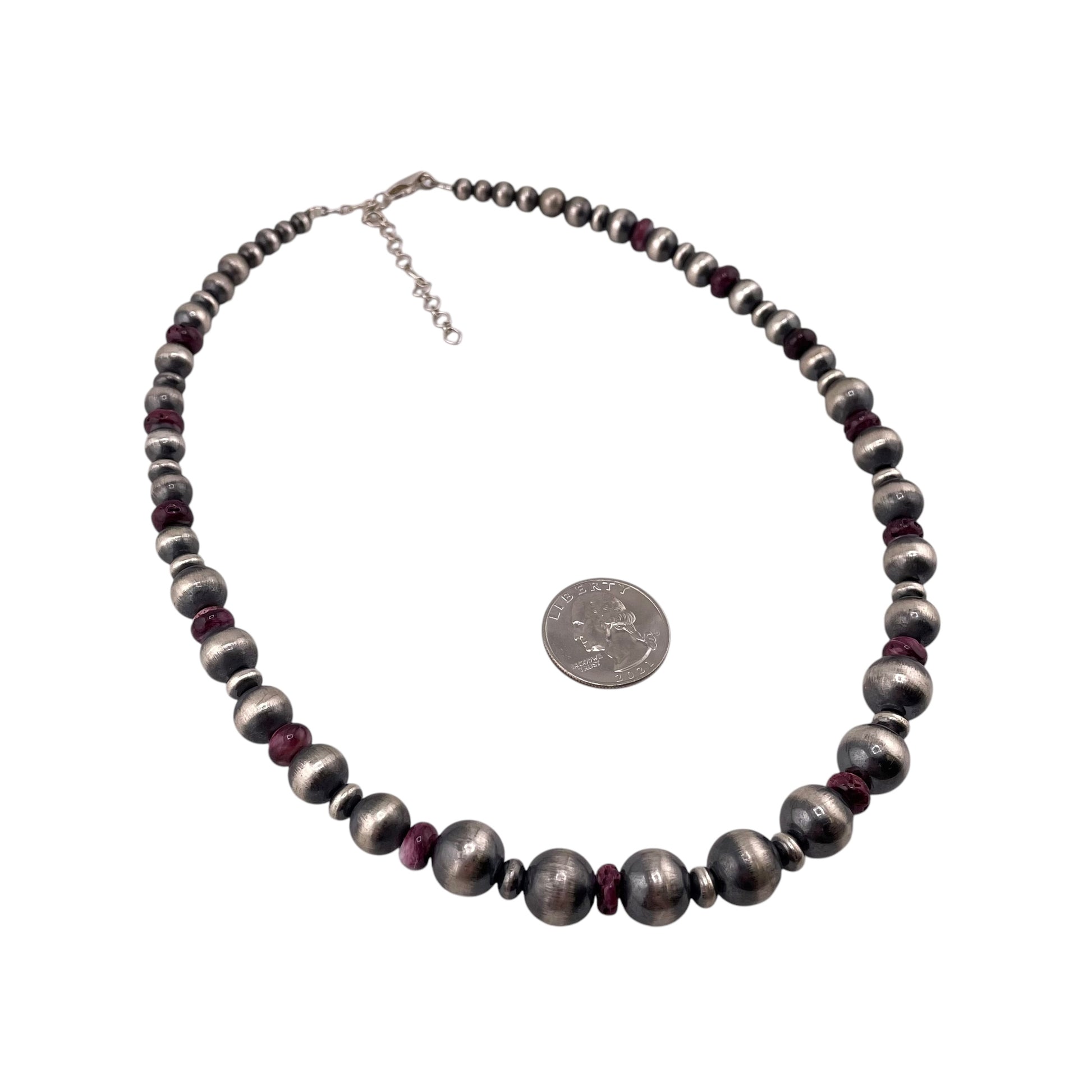 Purple Spiny Oyster Desert Pearl Graduated Mixed Bead Necklace Sterling Silver