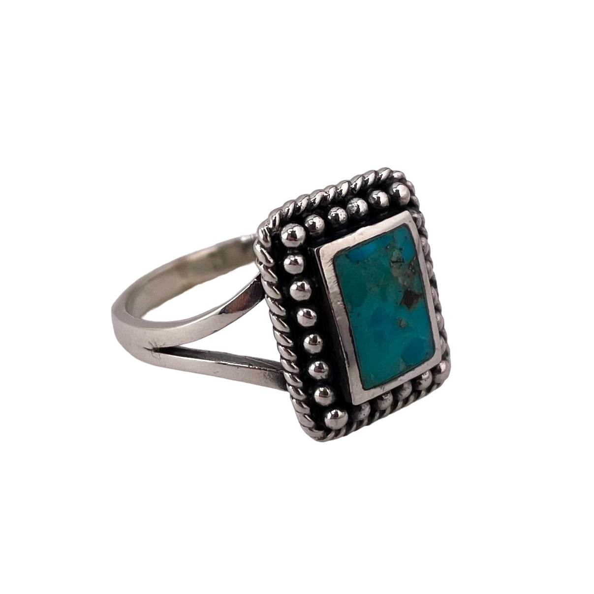 Rope Bead Turquoise Ring Sterling Silver