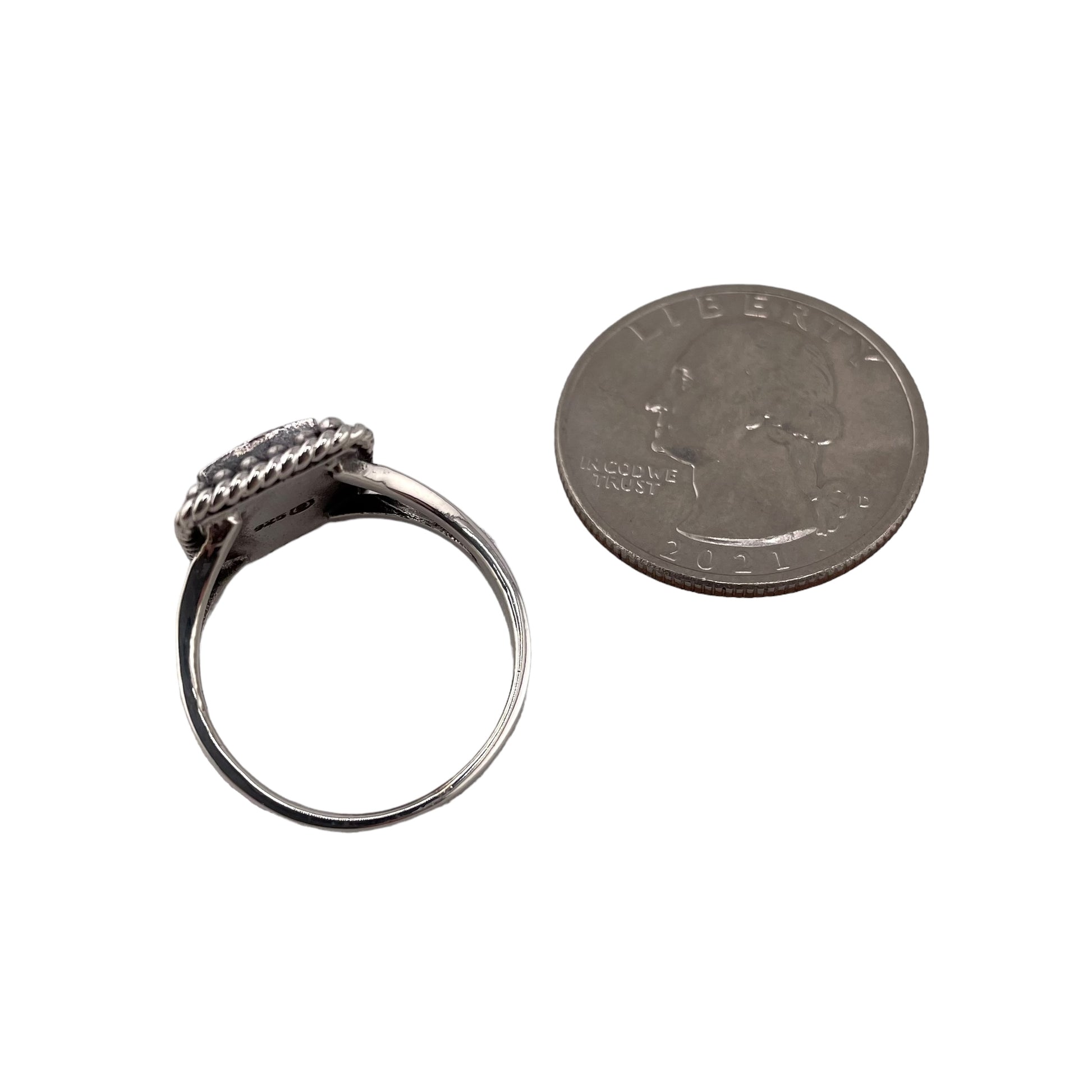 Rope Bead Turquoise Ring Sterling Silver. This ring measures 15mm length, at the longest point and is available in sizes 6-10.