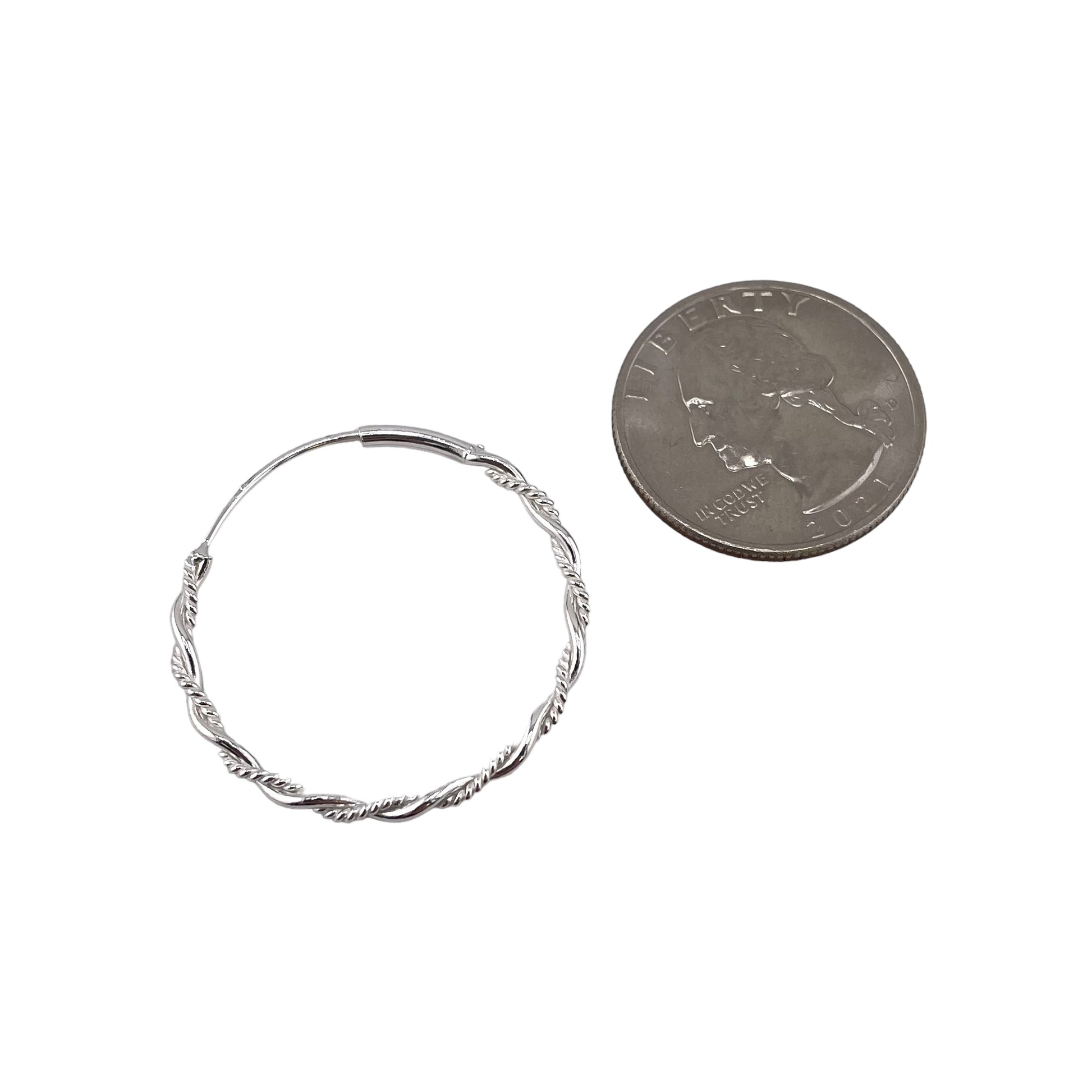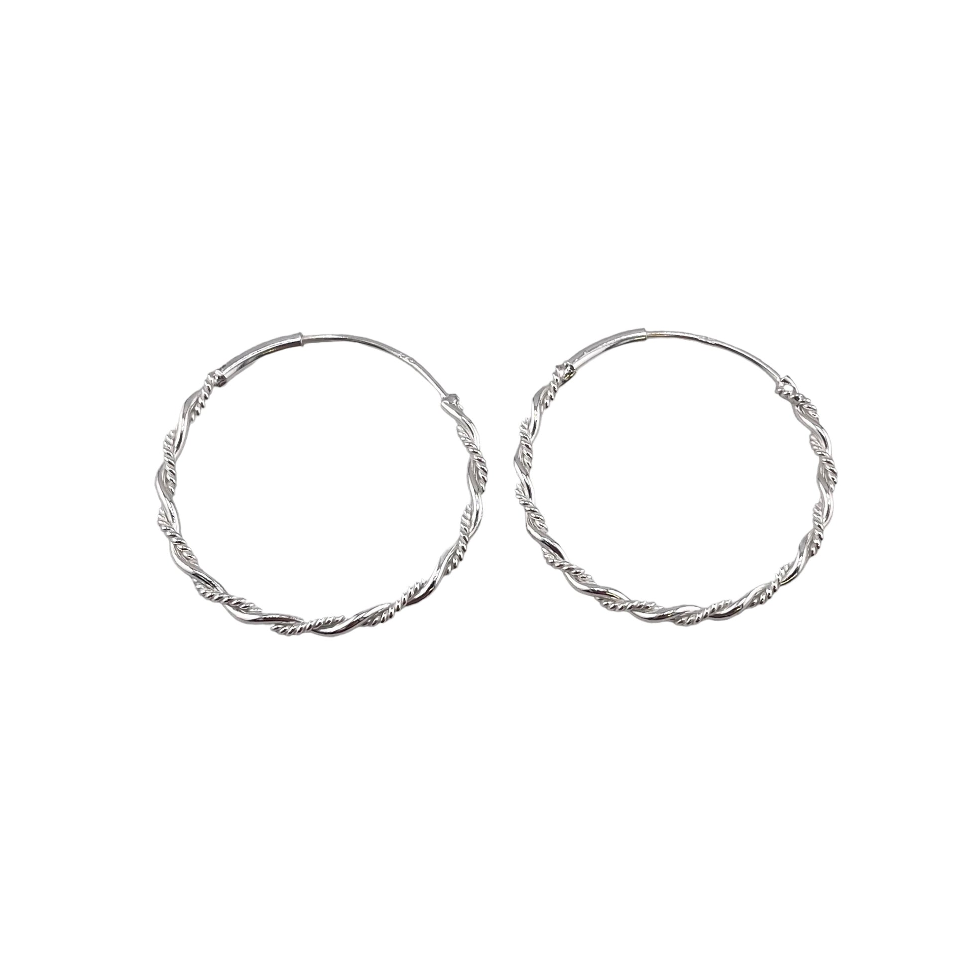 Rope Twist Endless Hoop Earrings Sterling Silver Available From 18mm to 30mm