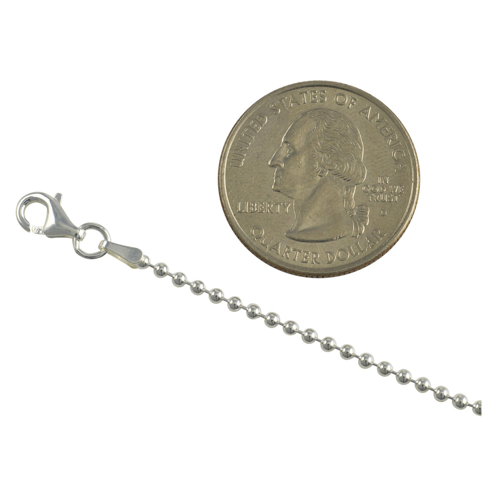 Sterling Silver Round Bead Ball 1.8mm Chain. Made in Italy.