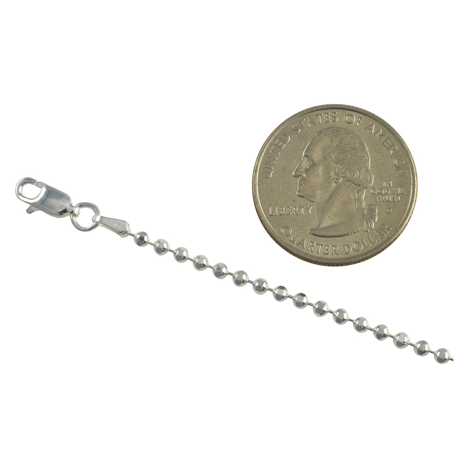 Sterling Silver Diamond Cut Bead Ball 2.2mm Chain. Made in Italy.