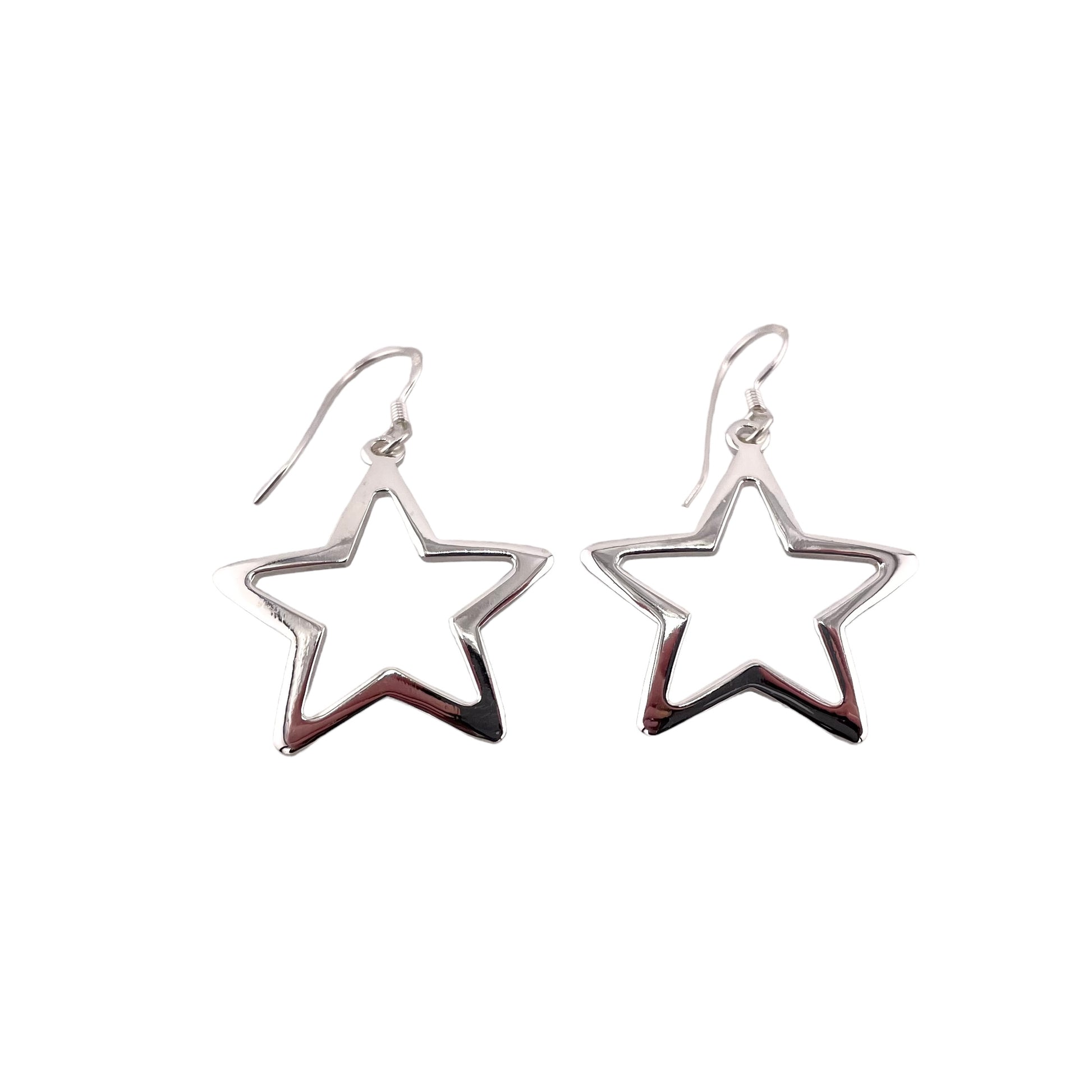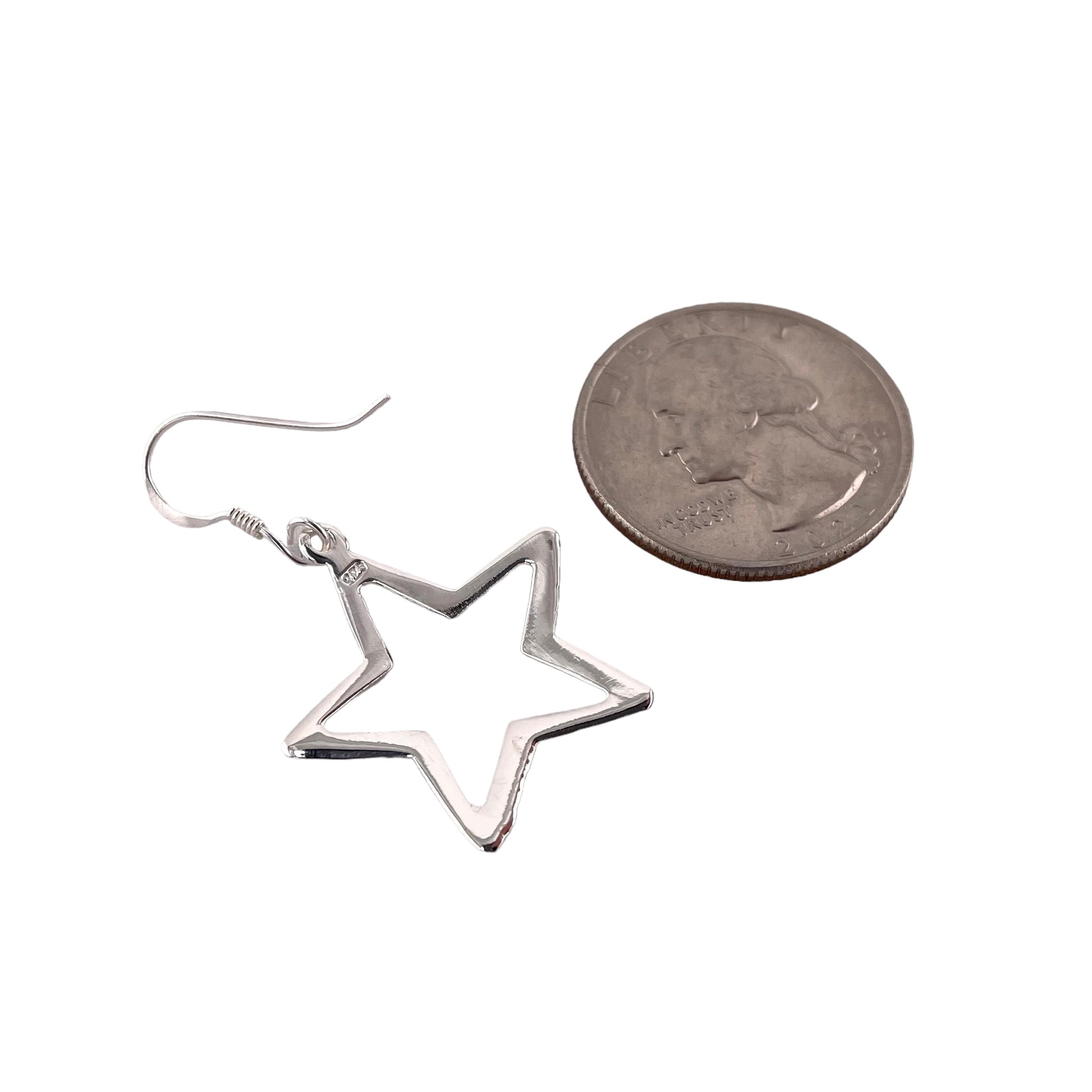 Star Dangle Earrings Sterling Silver. Measurements of these earrings are 1- 1/2"L and 1"W.Â