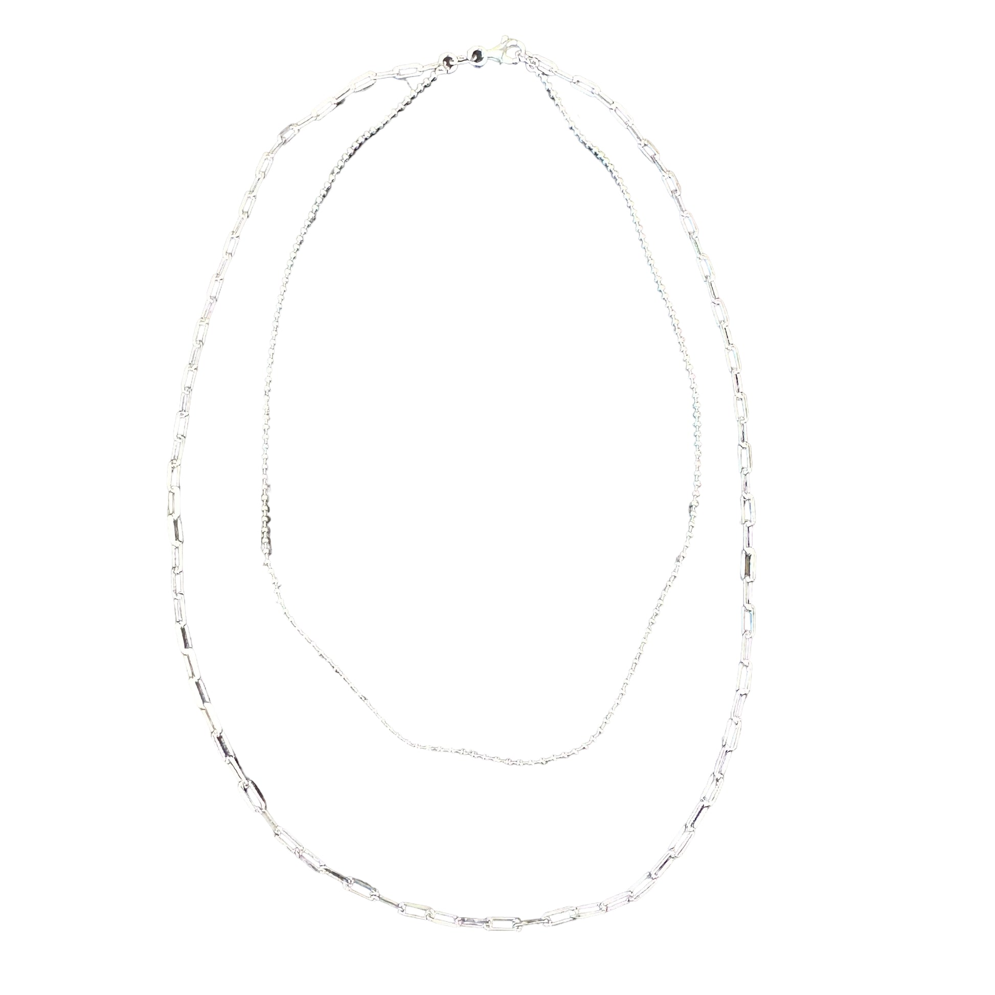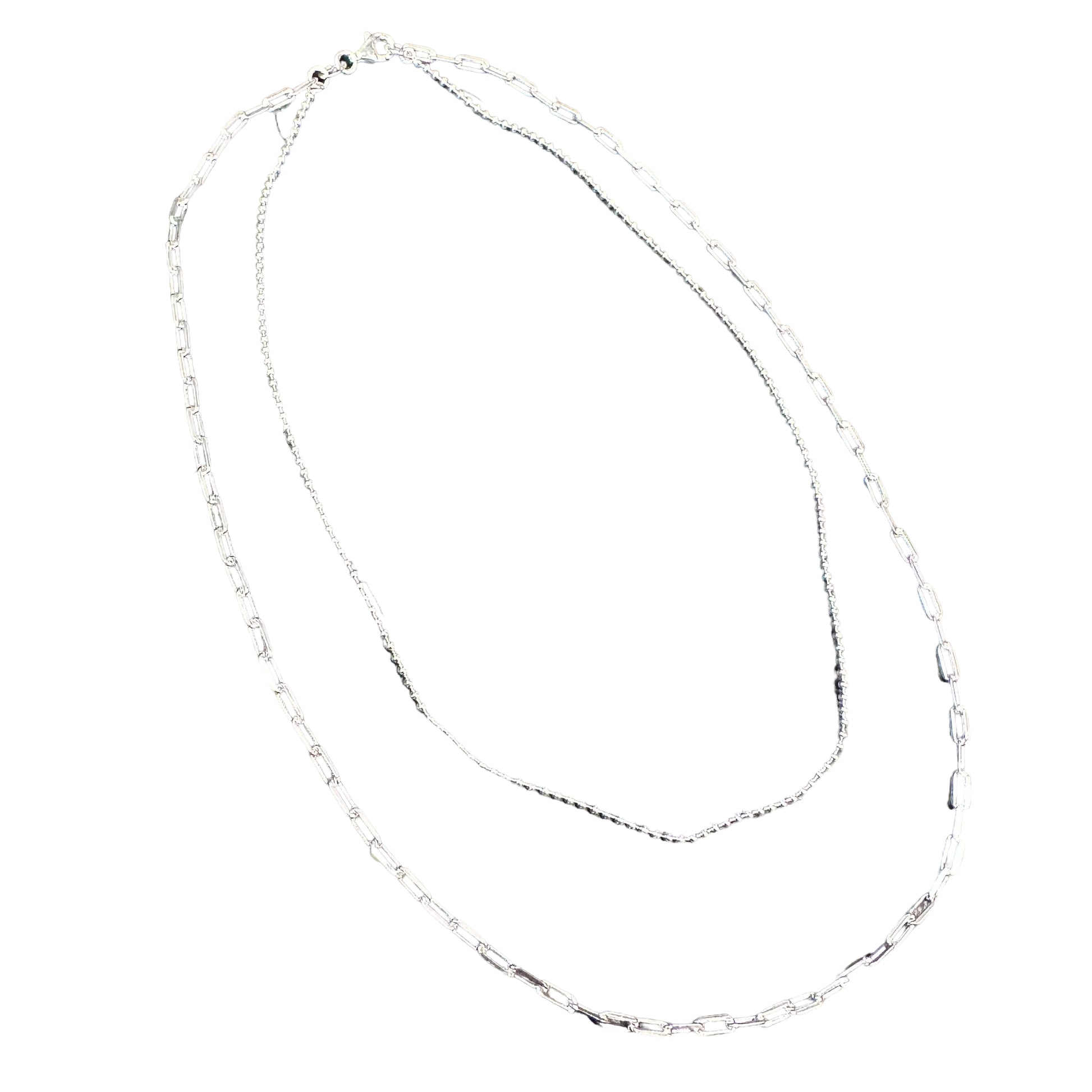 Sterling Silver Fancy Bead & Chain Link Layered Necklace. The top layer is 14" long and the bottom layer measures 18" long.