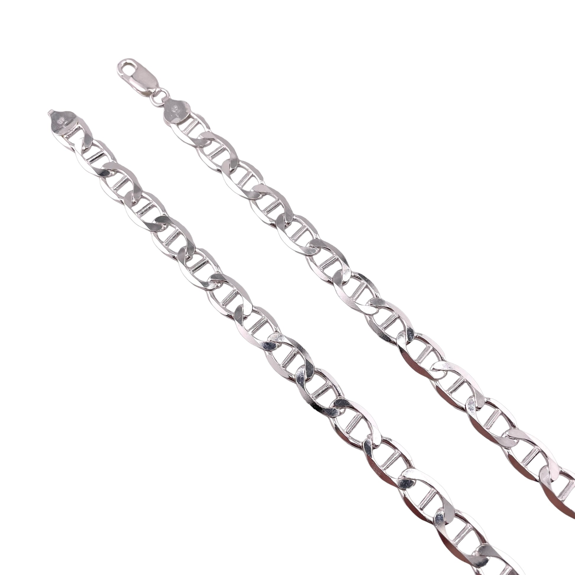 Sterling Silver Flat Marina 200 9mm Chain. Made in Italy.