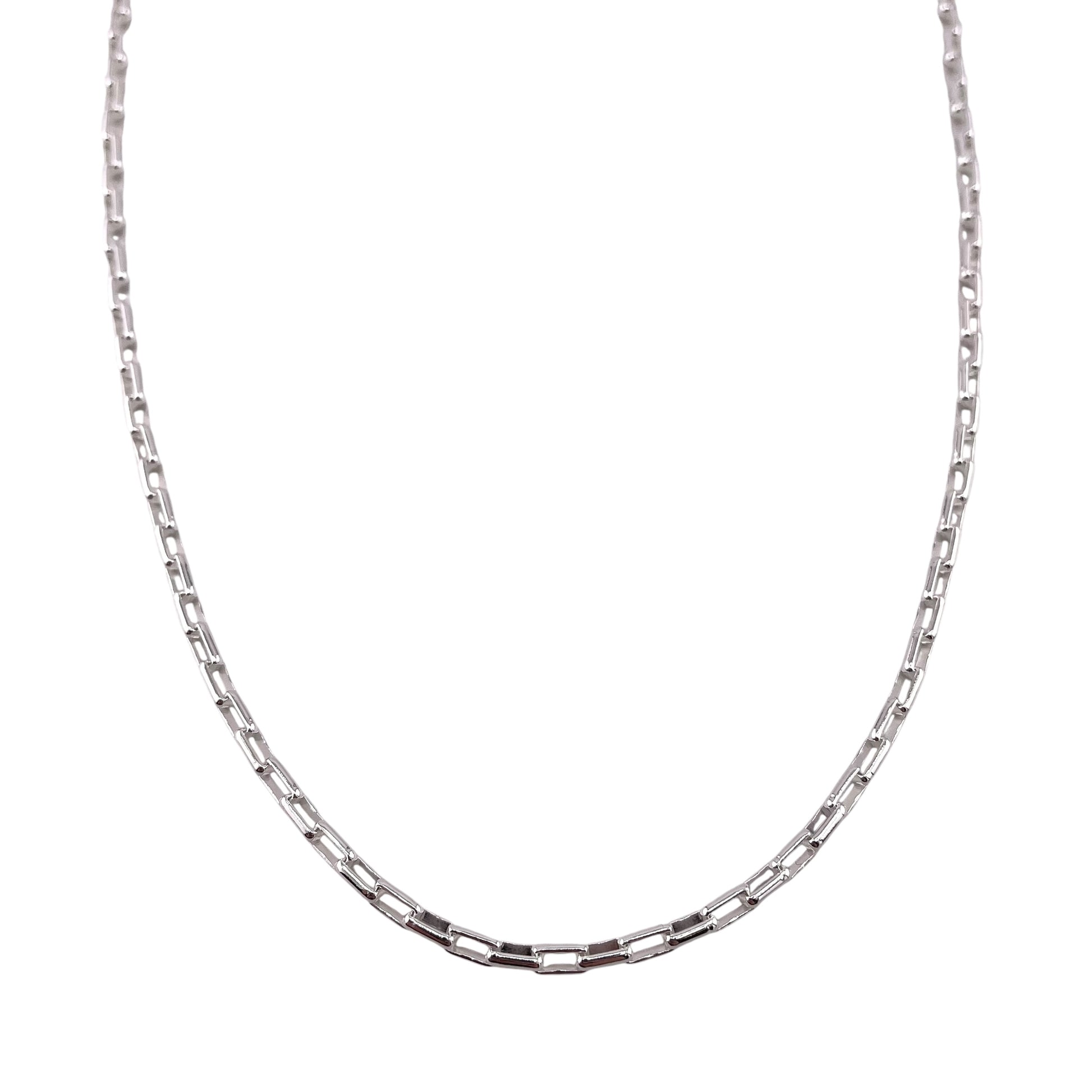 Sterling Silver Long Oval Box 2.6mm Chain. Made in Italy.
