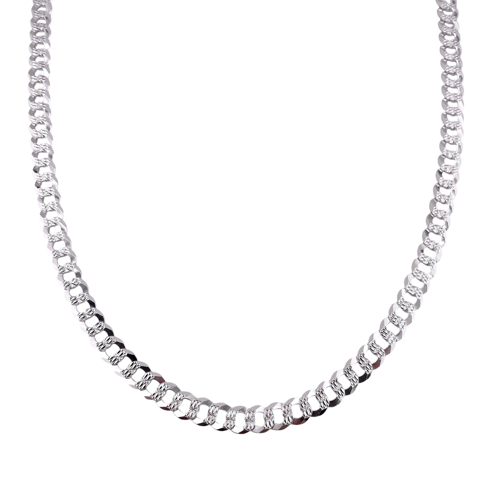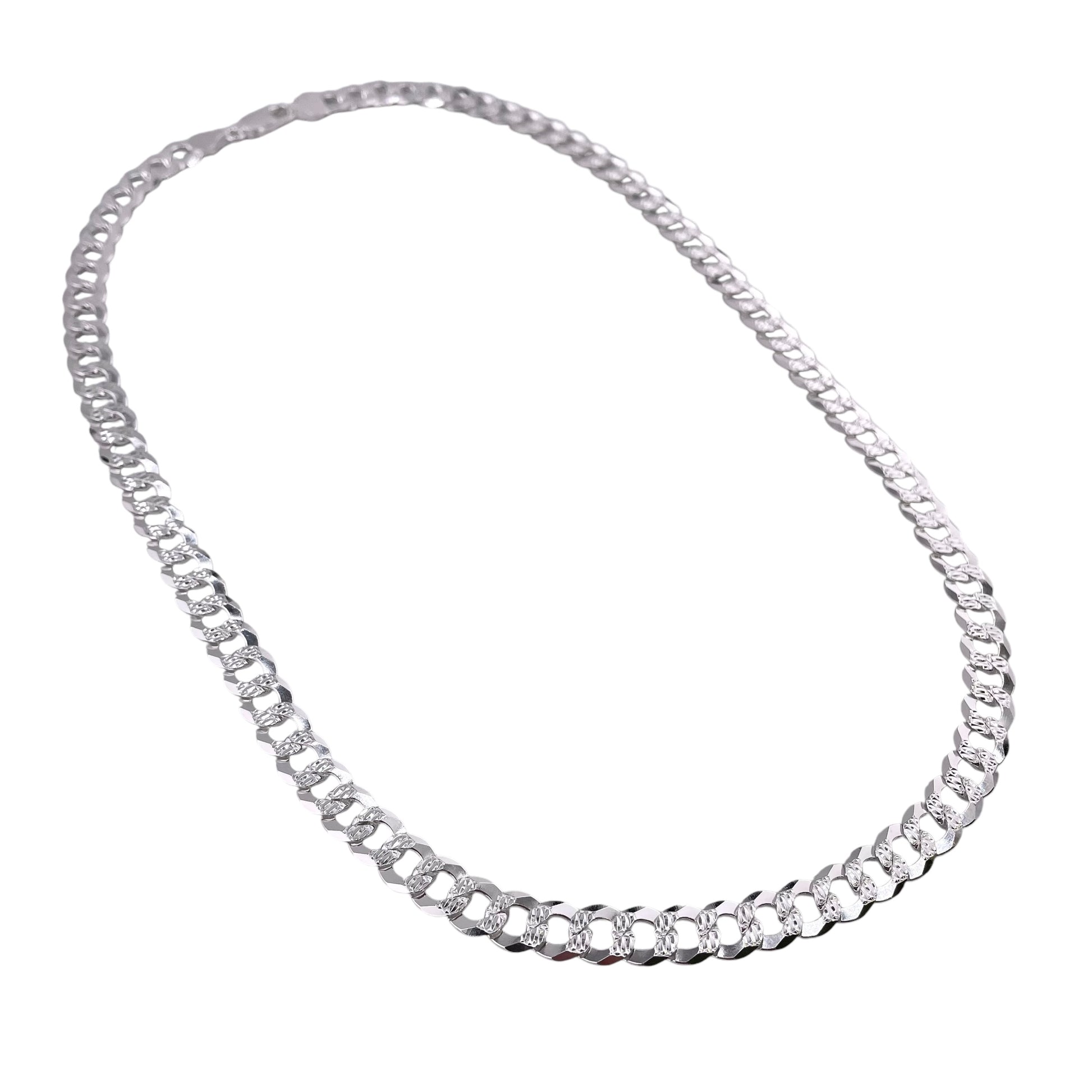 Sterling Silver Pave Super Flat Curb 200 8mm Chain. Made in Italy.