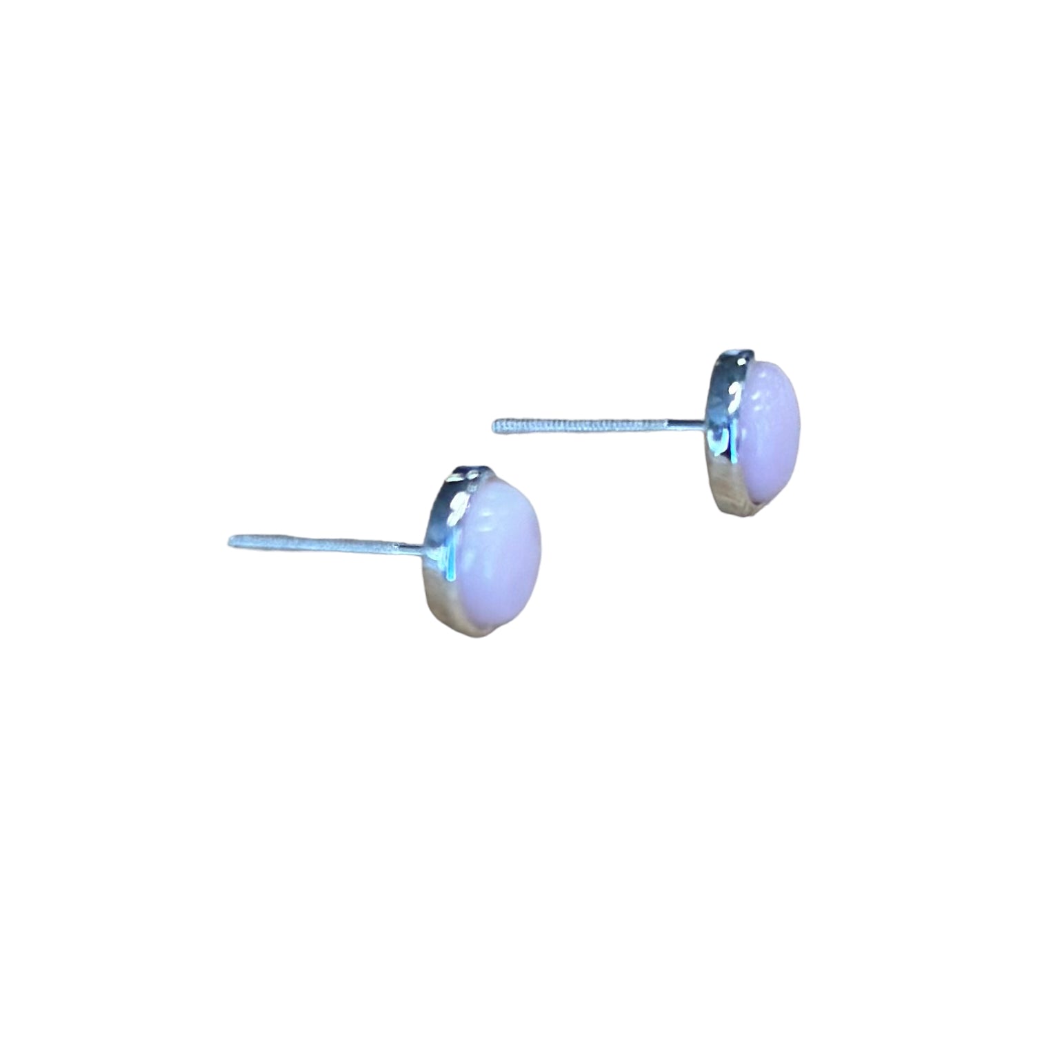 Sterling Silver Pink Conch Round Screwback Post Earrings