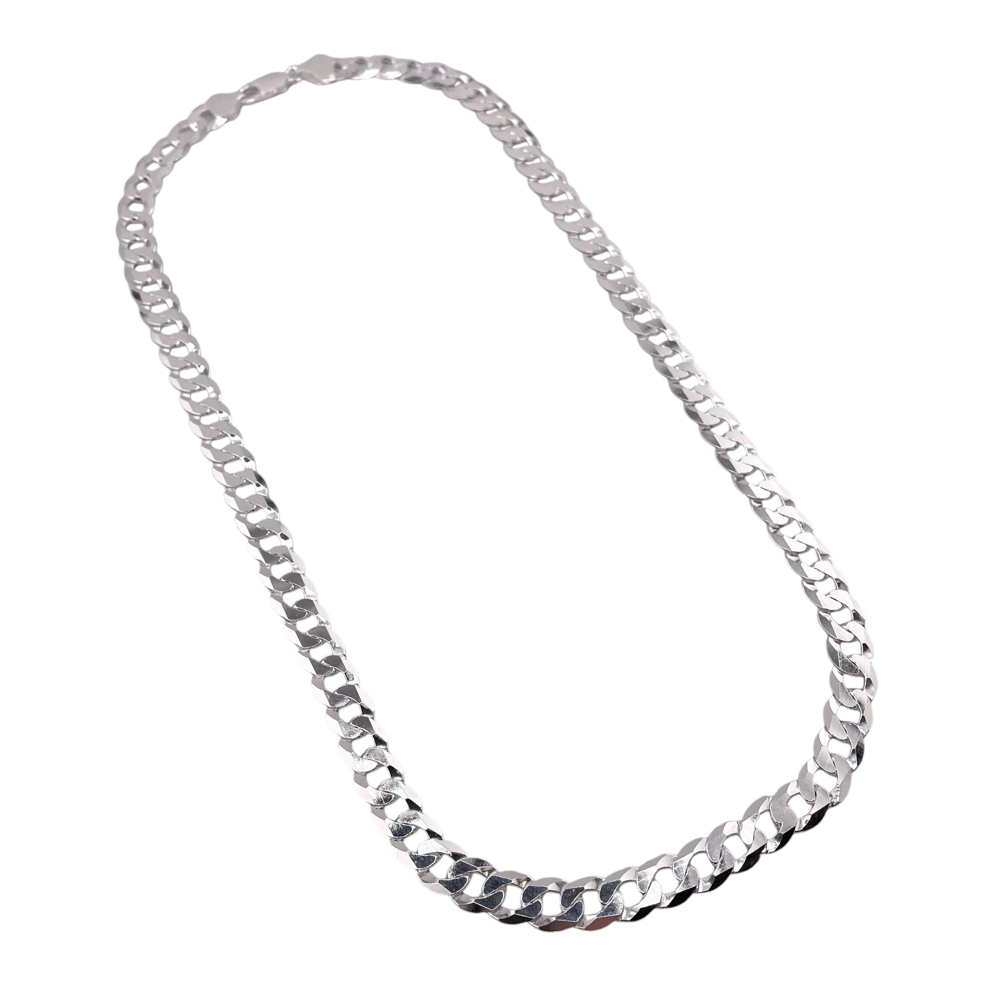 Sterling Silver Super Flat Curb 200 8mm Chain. Made in Italy.