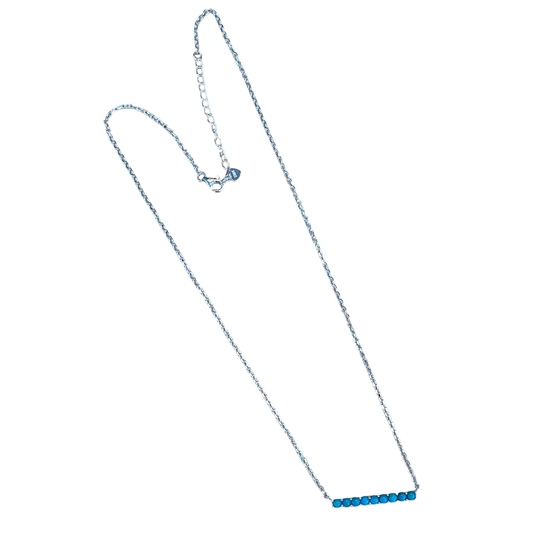 Sterling Silver Turquoise Bar Style Necklace. This necklace measures 16" long, plus a 2" extender, for a total of 18". The pendant is approximately 3/16" long and 1.5" wide.