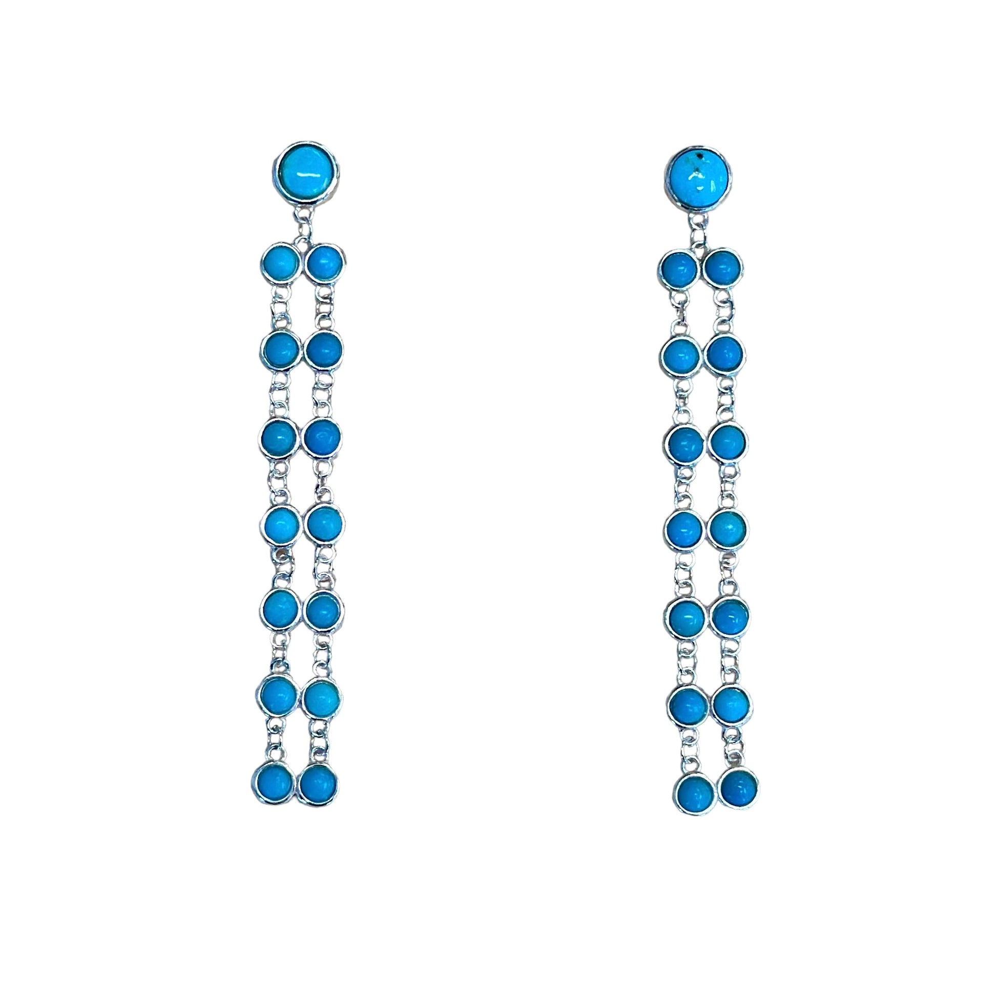 Sterling Silver Turquoise Double Row Post Earrings. Measurements of these earrings are 2.5" long and 5/16" wide.Â
