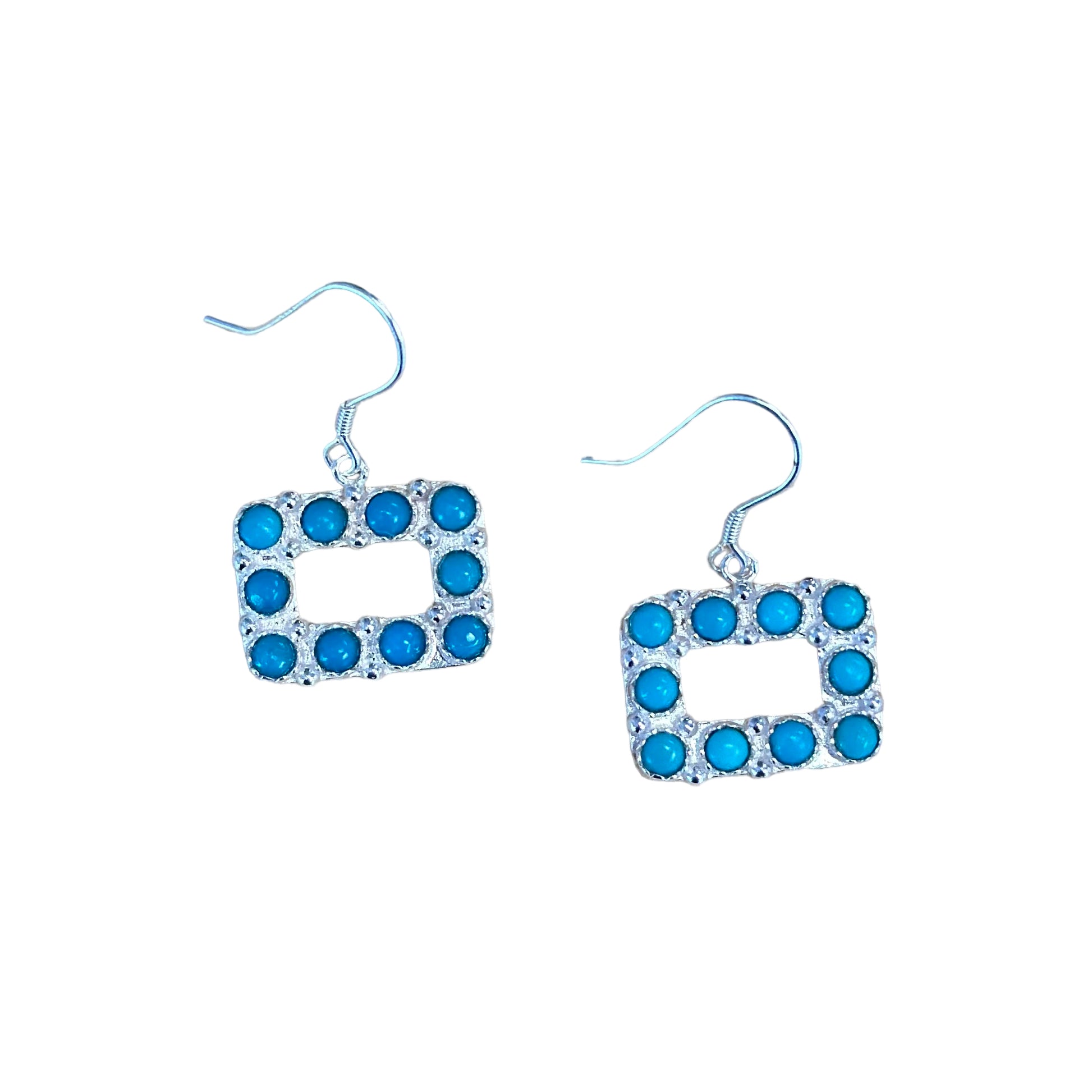 Sterling Silver Turquoise Rectangle Dangle Earrings
