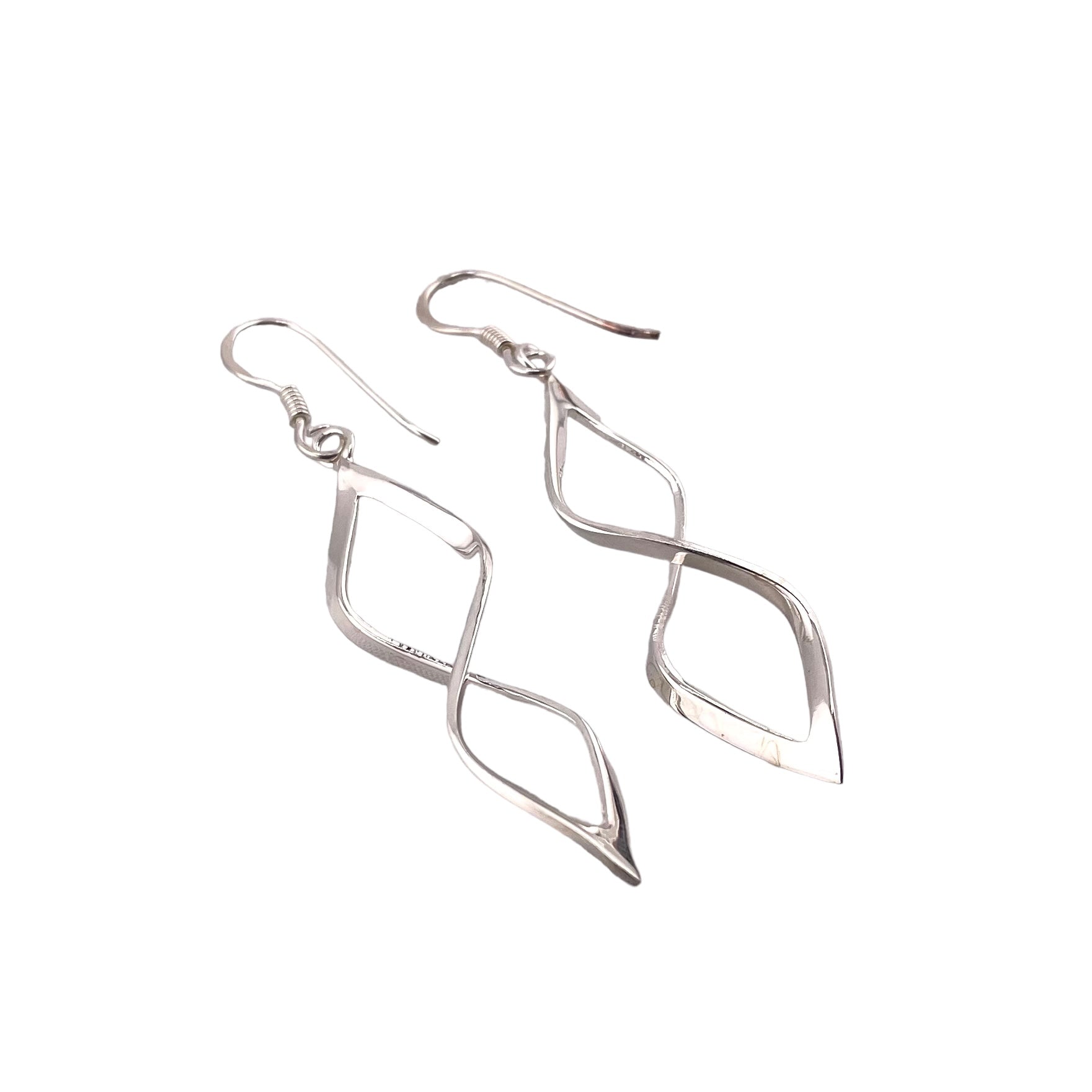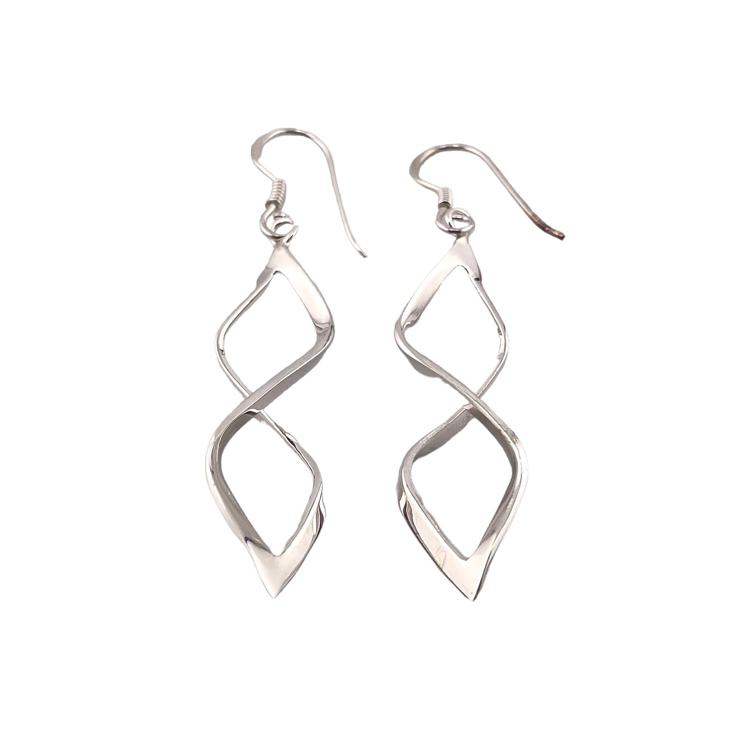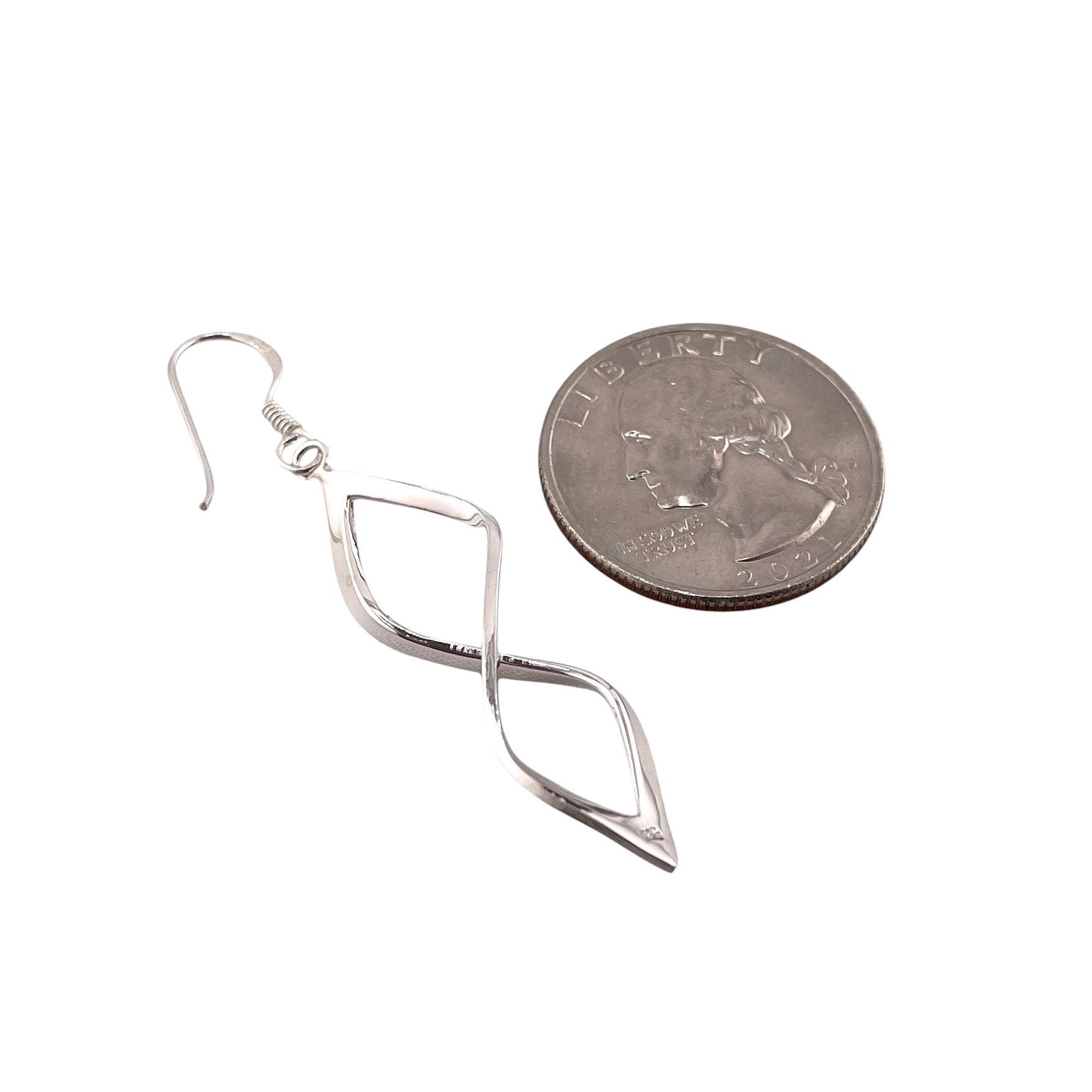 Swirl Dangle Earrings Sterling Silver. Measurements of these earrings are 2- 1/8" long and 1/2" wide.Â