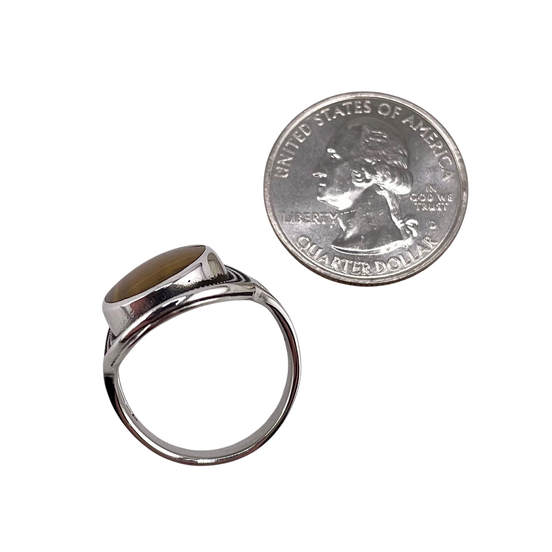 Tiger Eye Stone Oval Rope Ring Sterling Silver